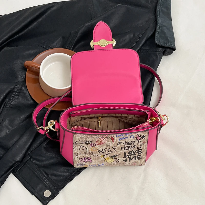 🍒Graffiti handbag/Purse women's bag designer luxury shoulder bag lu leather ladies messenger bag pink crossbody bag casual bag No Word Of A Lie This GRAFFITI Bag CAN Be Yours