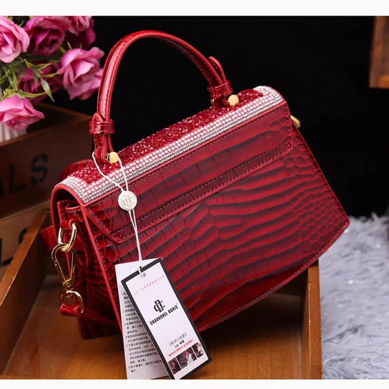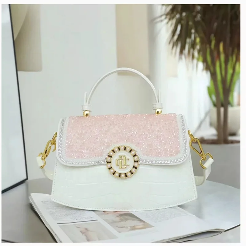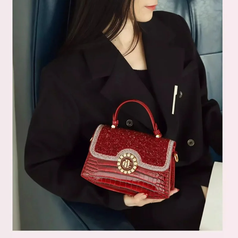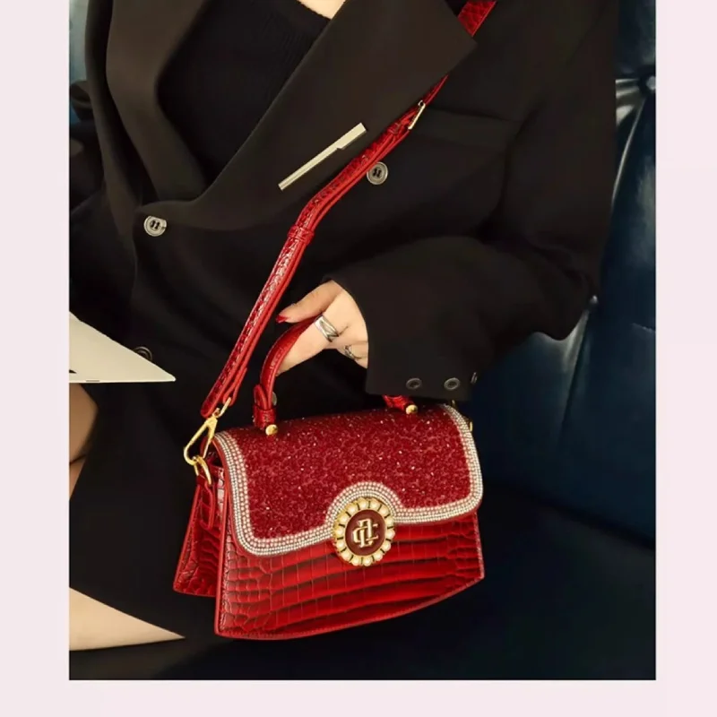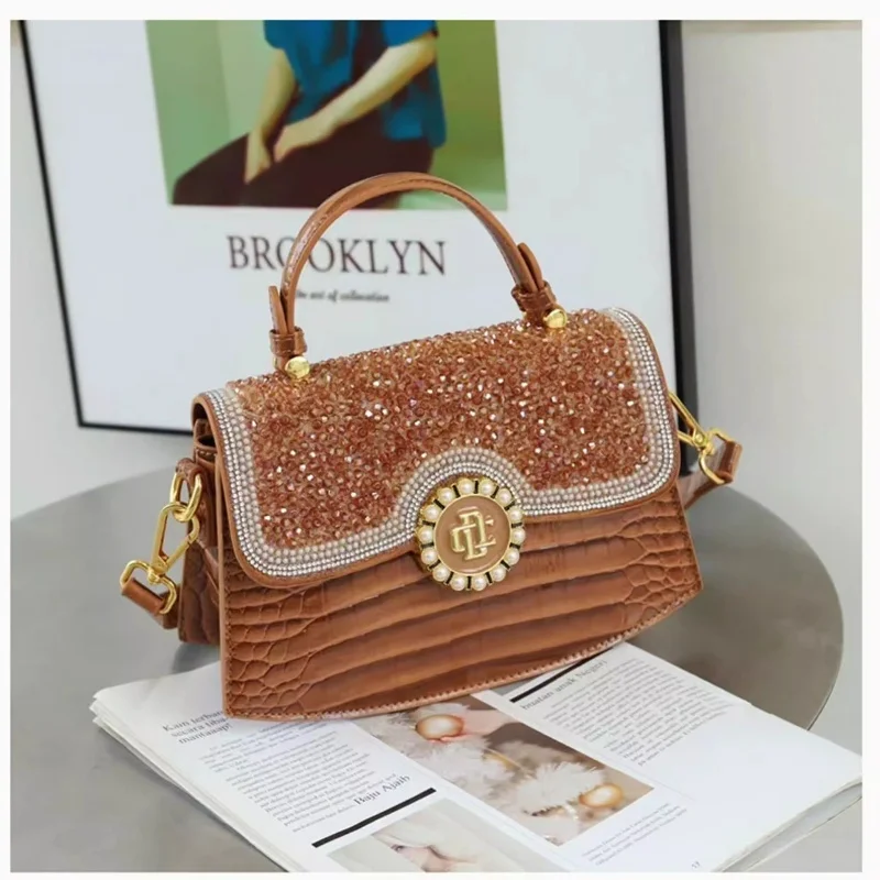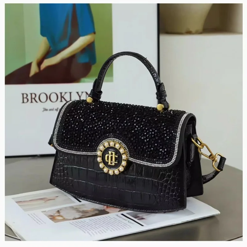🍒Luxury designer alligator handbag women high end bag trendy shoulder bag diamond studded crossbody Pick Up A Pretty Pearl