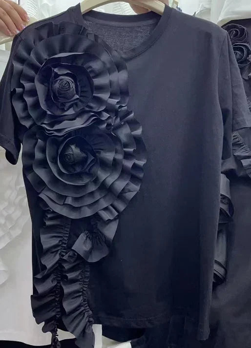 🍒Summer t-shirts for women o-neck smart casual tops t-shirt for party 3D floral tees occasion wear oversized shirts Look A'white At Night