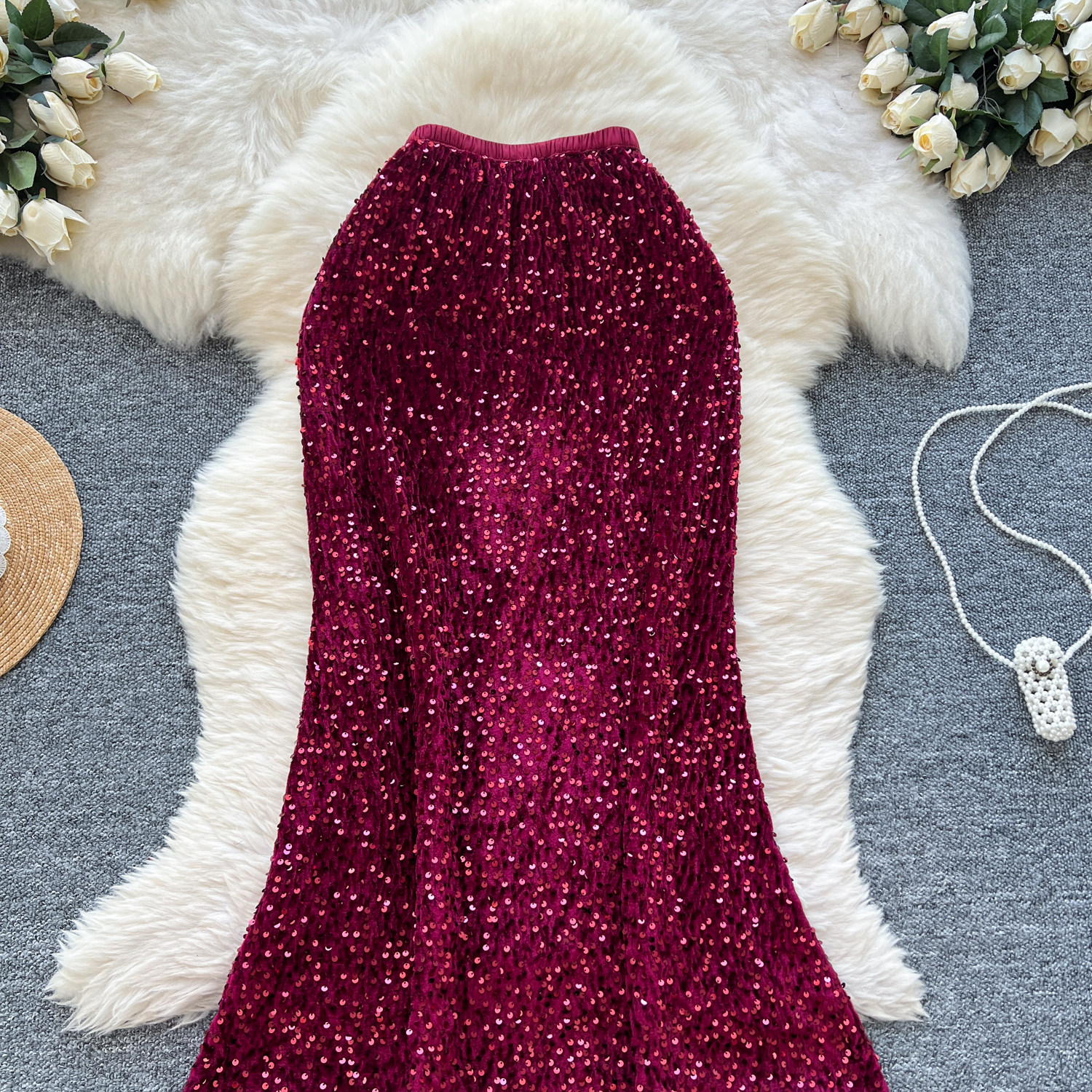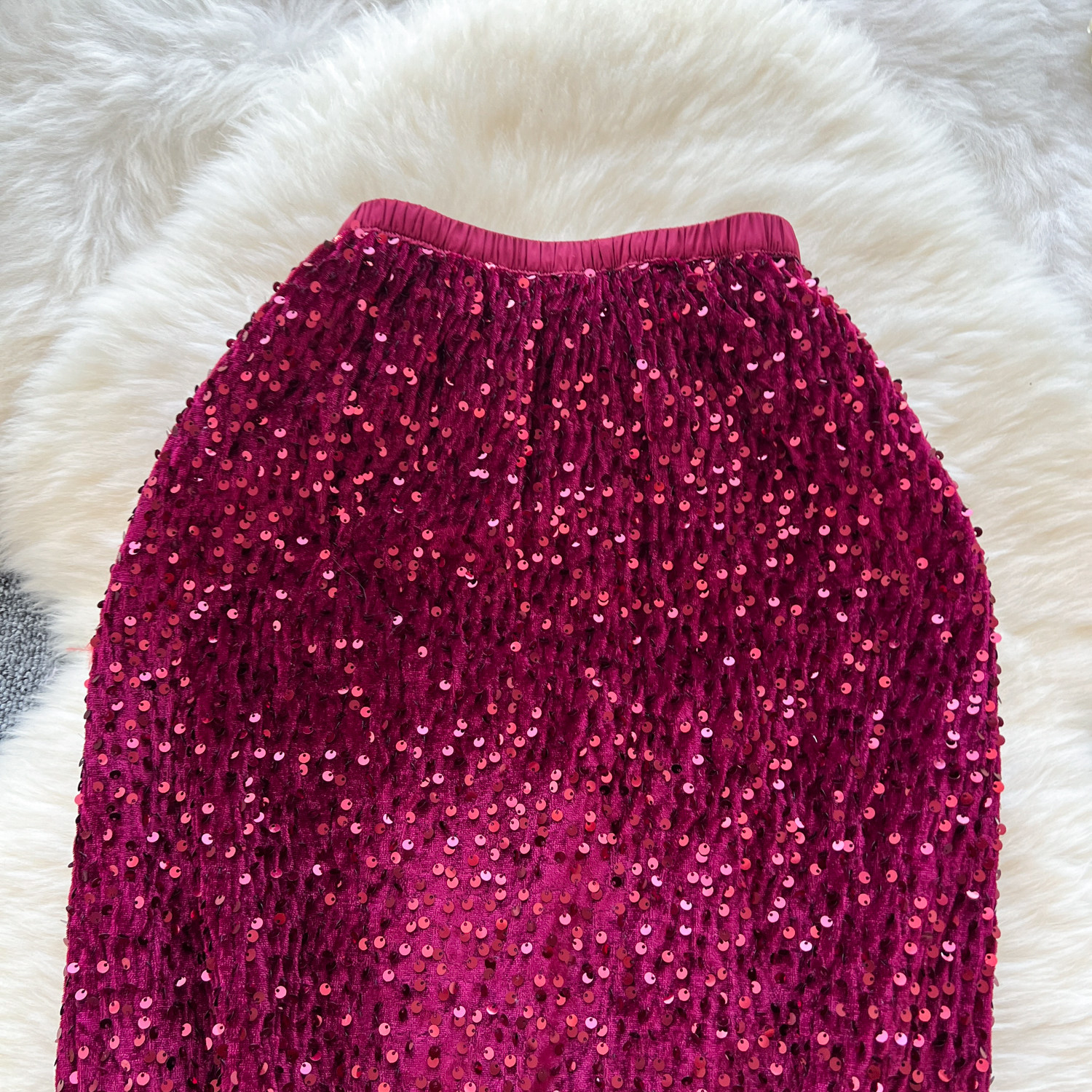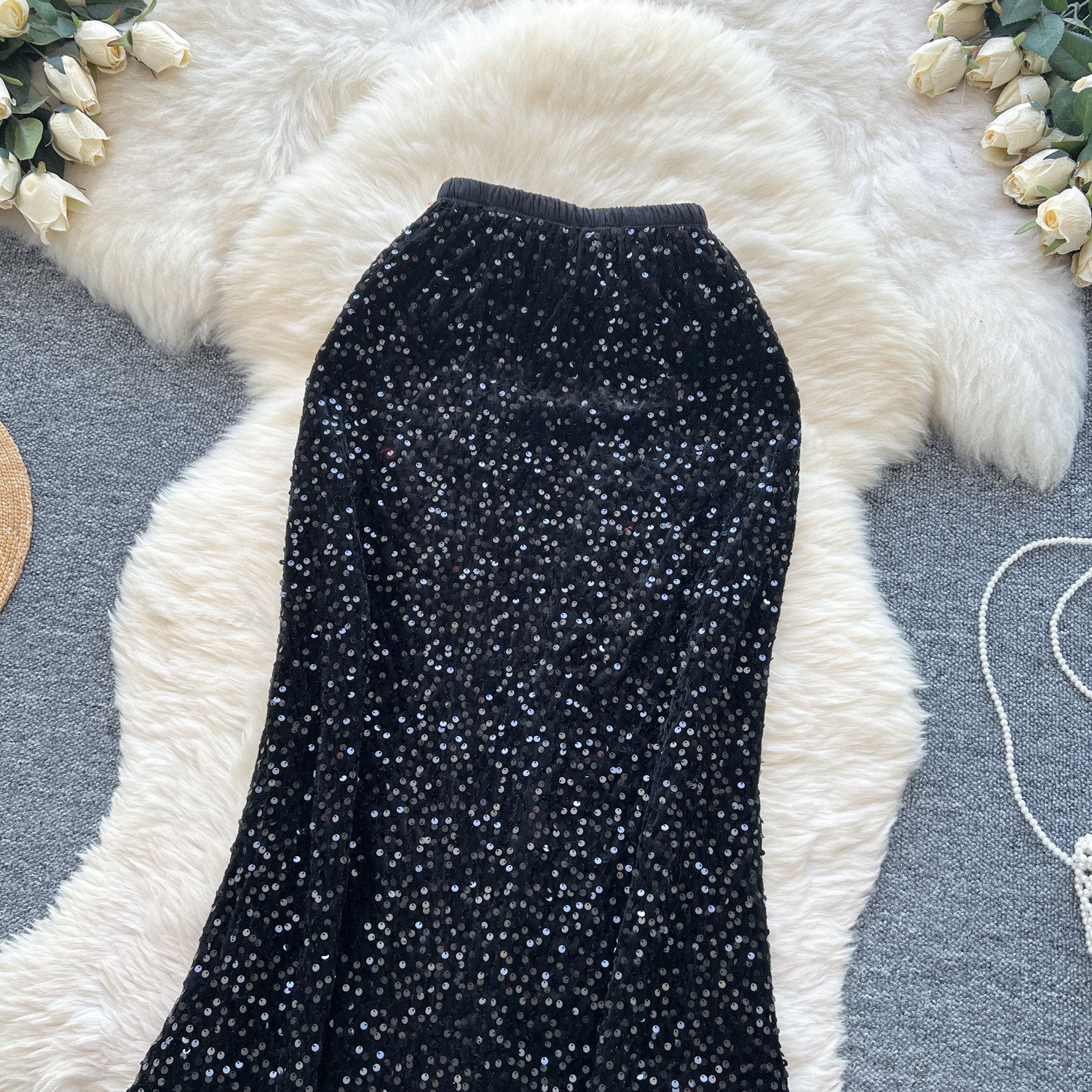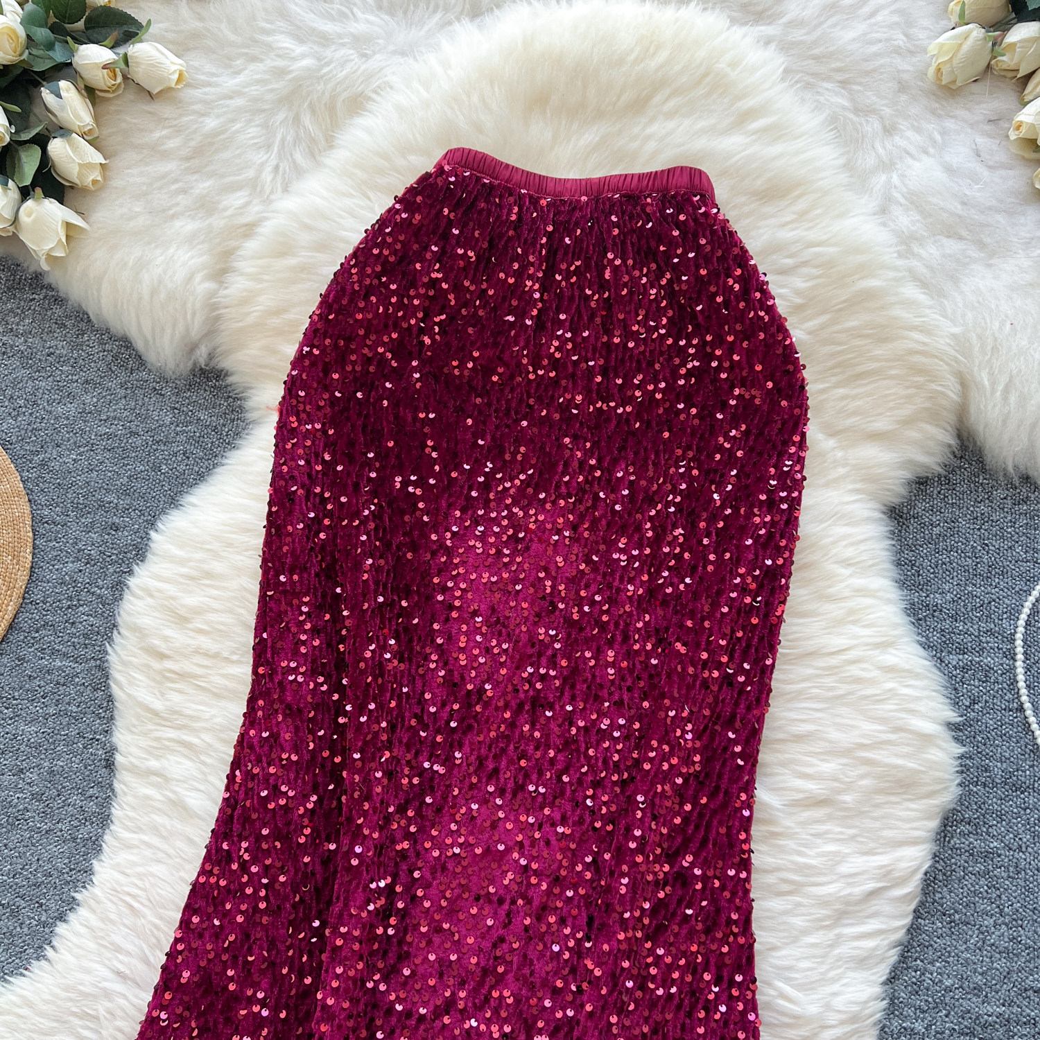 🍒Sequin tulip skirt fitted hip womens smart casual high waist elastic skirts feminine fashion party wear occasion fashion wear
