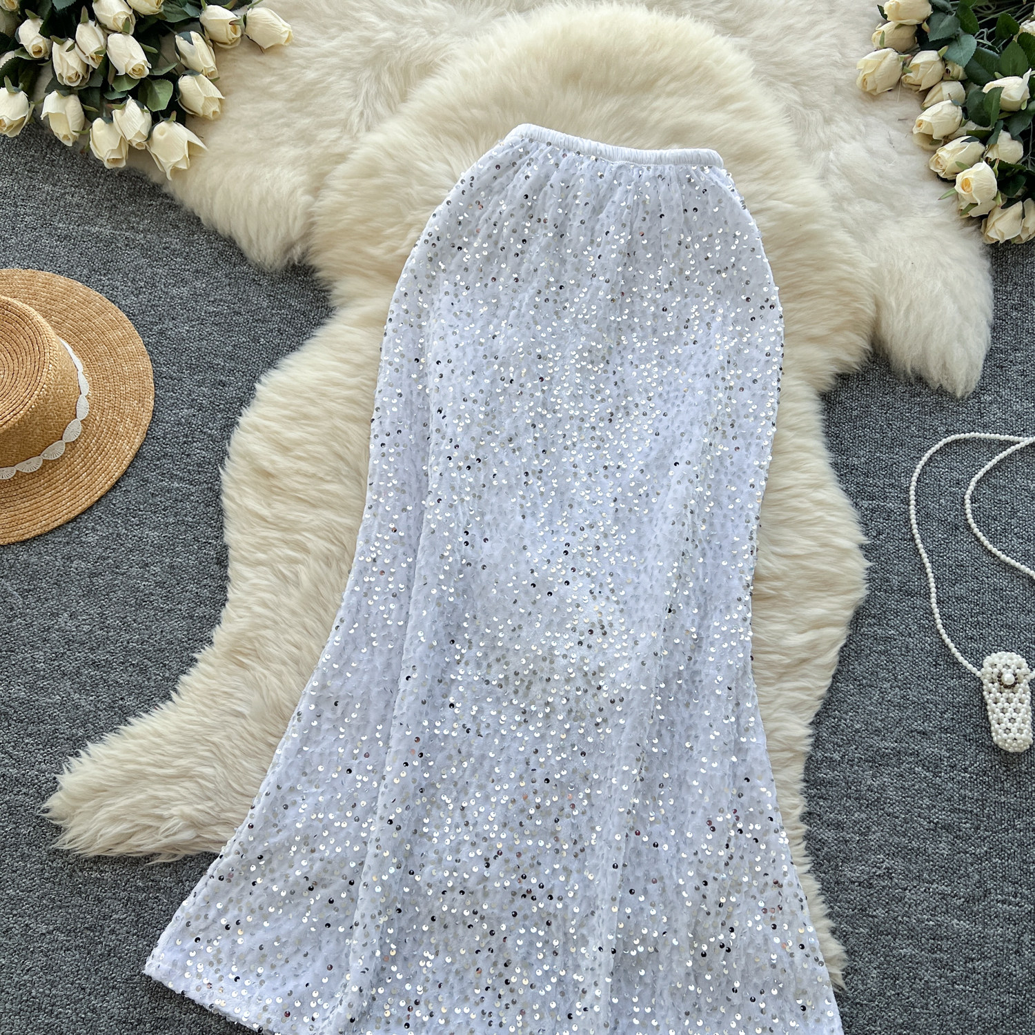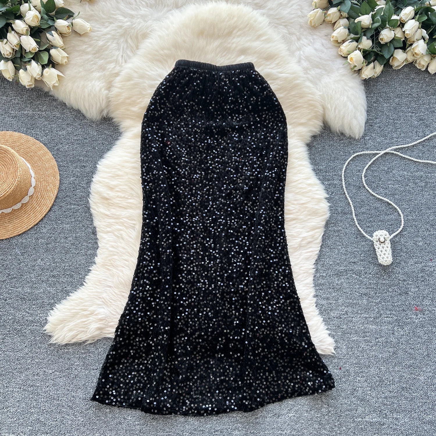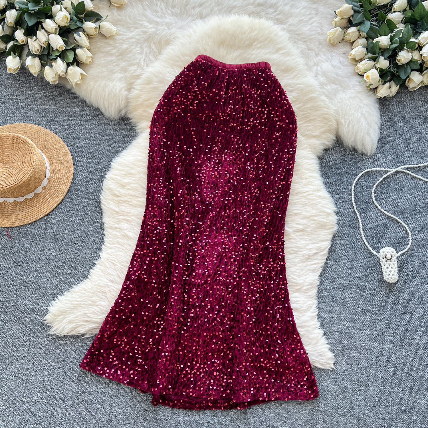 🍒Sequin tulip skirt fitted hip womens smart casual high waist elastic skirts feminine fashion party wear occasion fashion wear