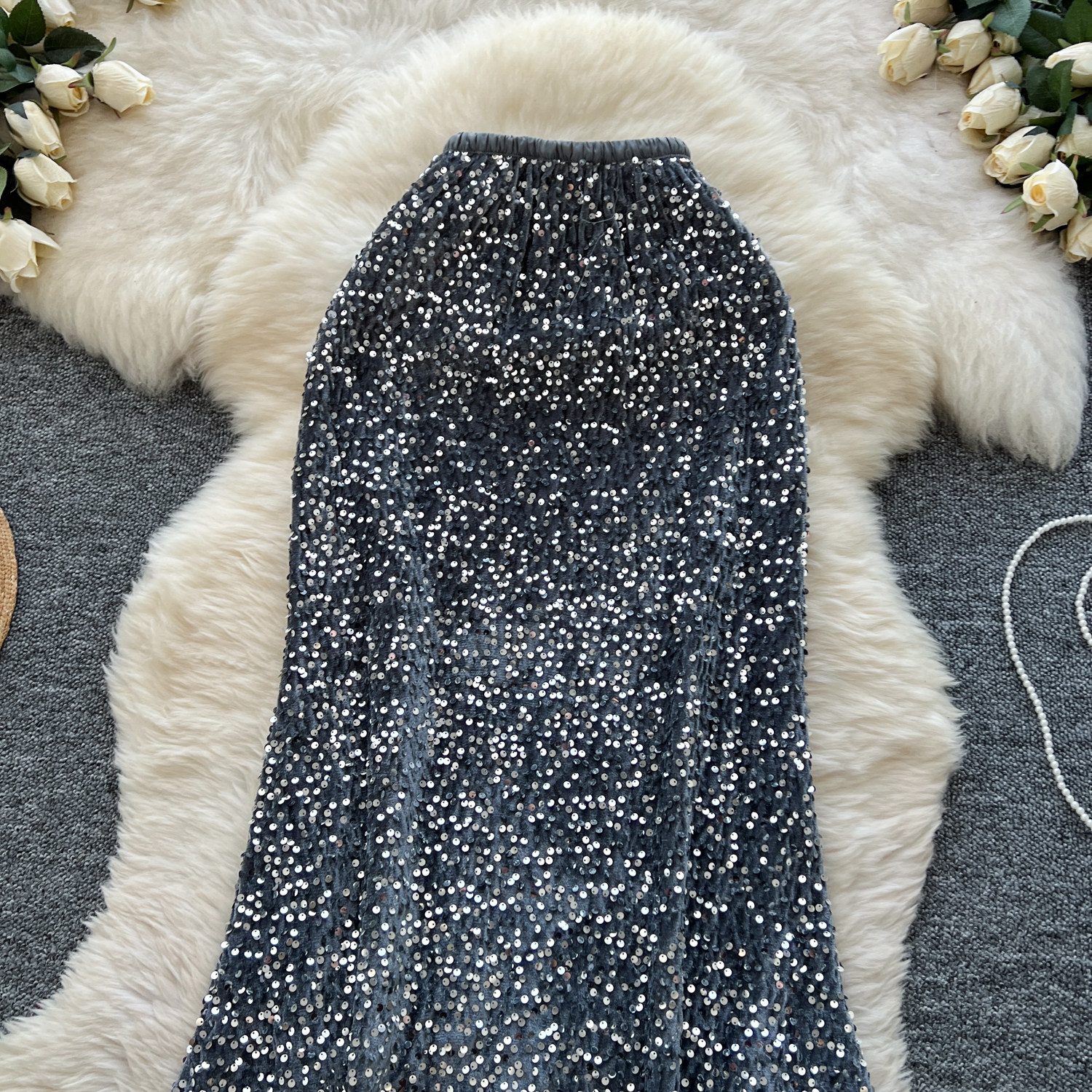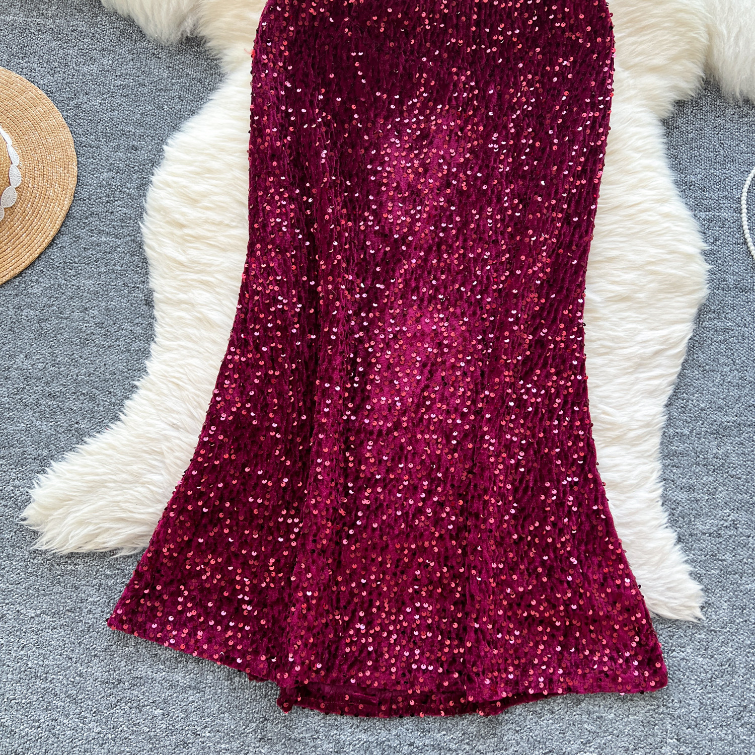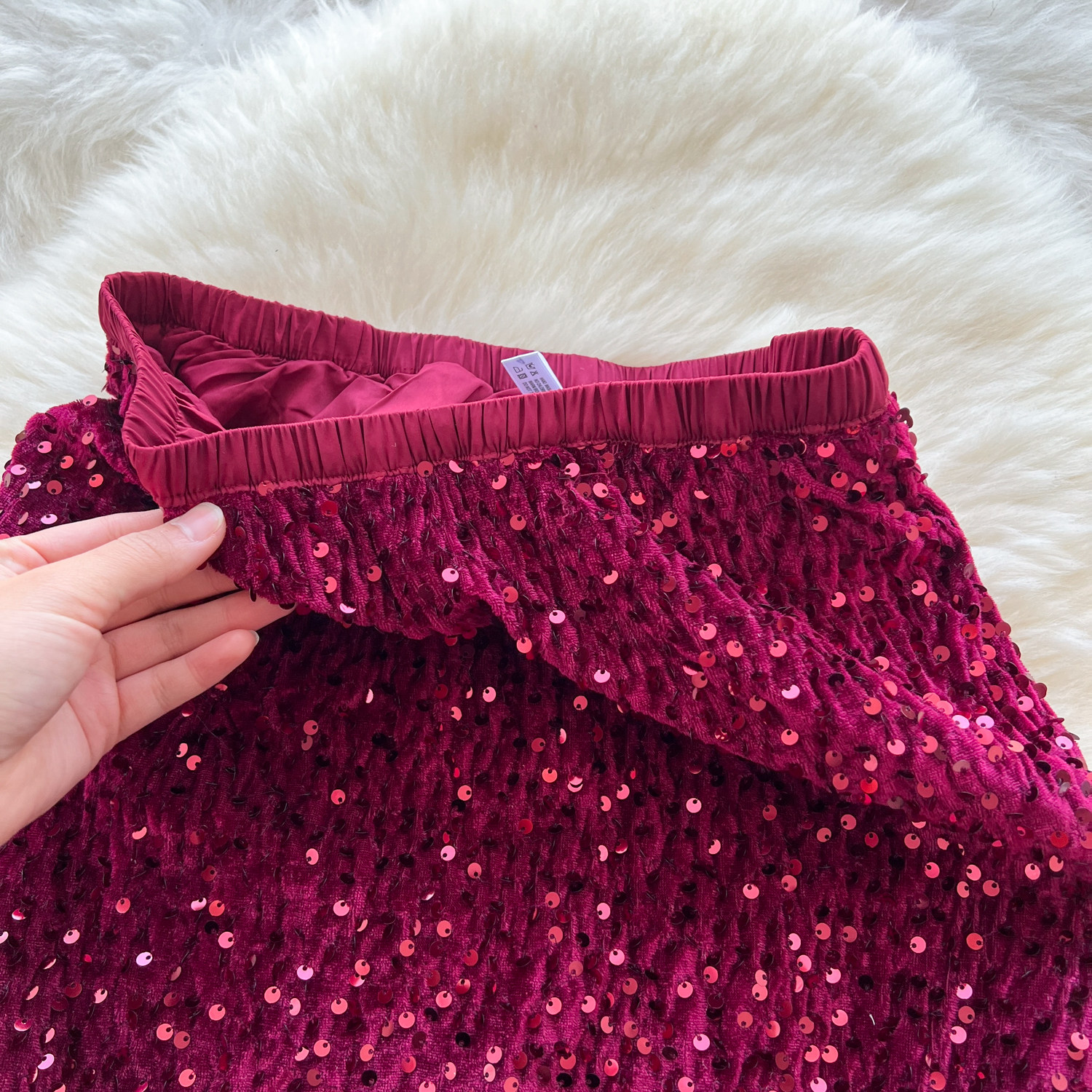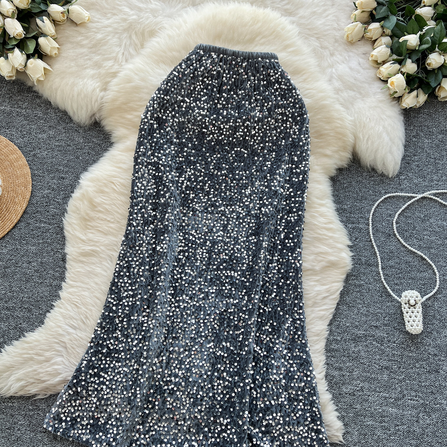 🍒Sequin tulip skirt fitted hip womens smart casual high waist elastic skirts feminine fashion party wear occasion fashion wear