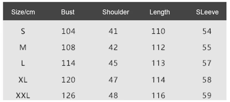 size_info: {"sizeInfoList":[{"length":{"cm":"108","inch":"42.52"},"size":"M","vid":-1},{"length":{"cm":"114","inch":"44.88"},"size":"L","vid":-2},{"length":{"cm":"120","inch":"47.24"},"size":"XL","vid":-3},{"length":{"cm":"126","inch":"49.61"},"size":"XXL","vid":-4}]}