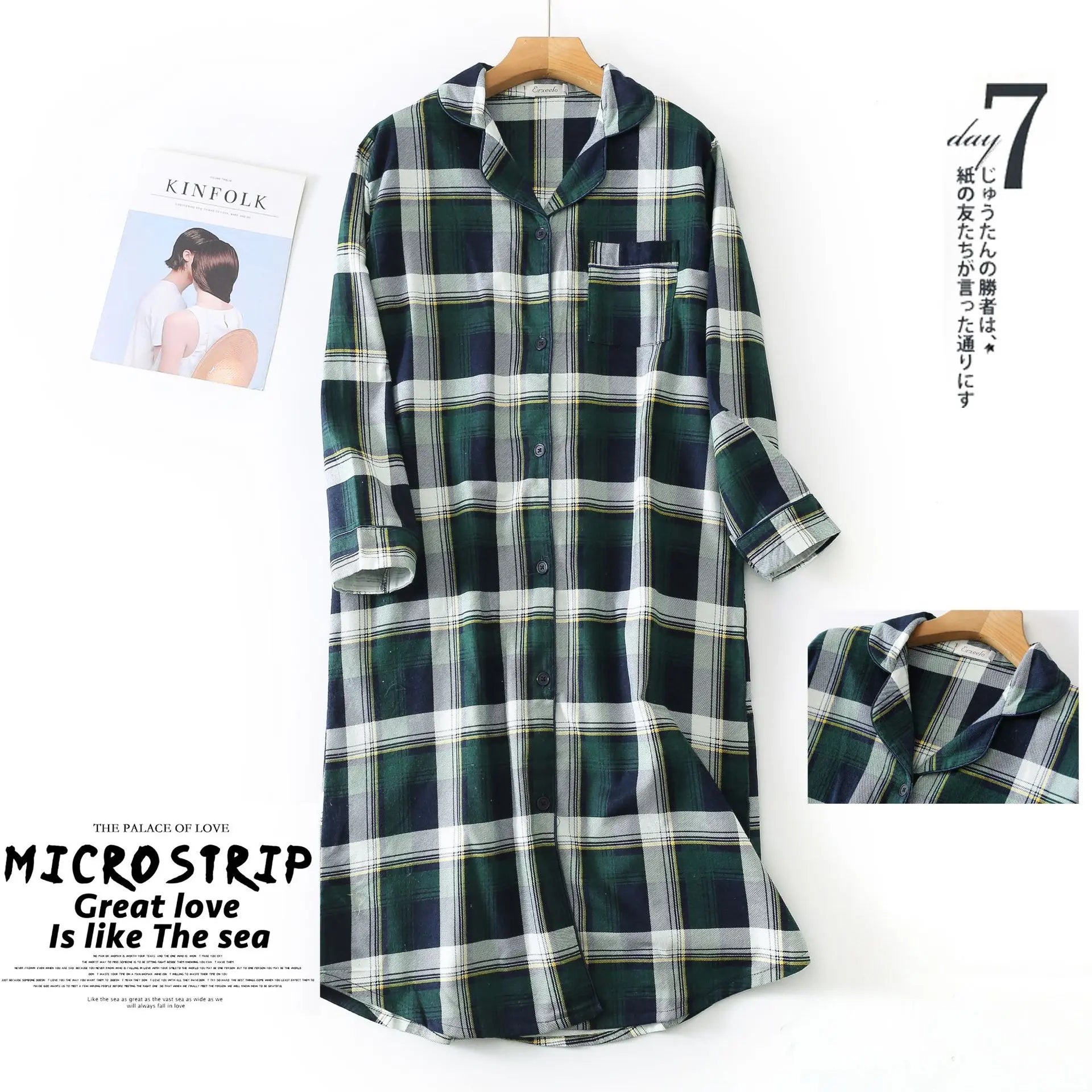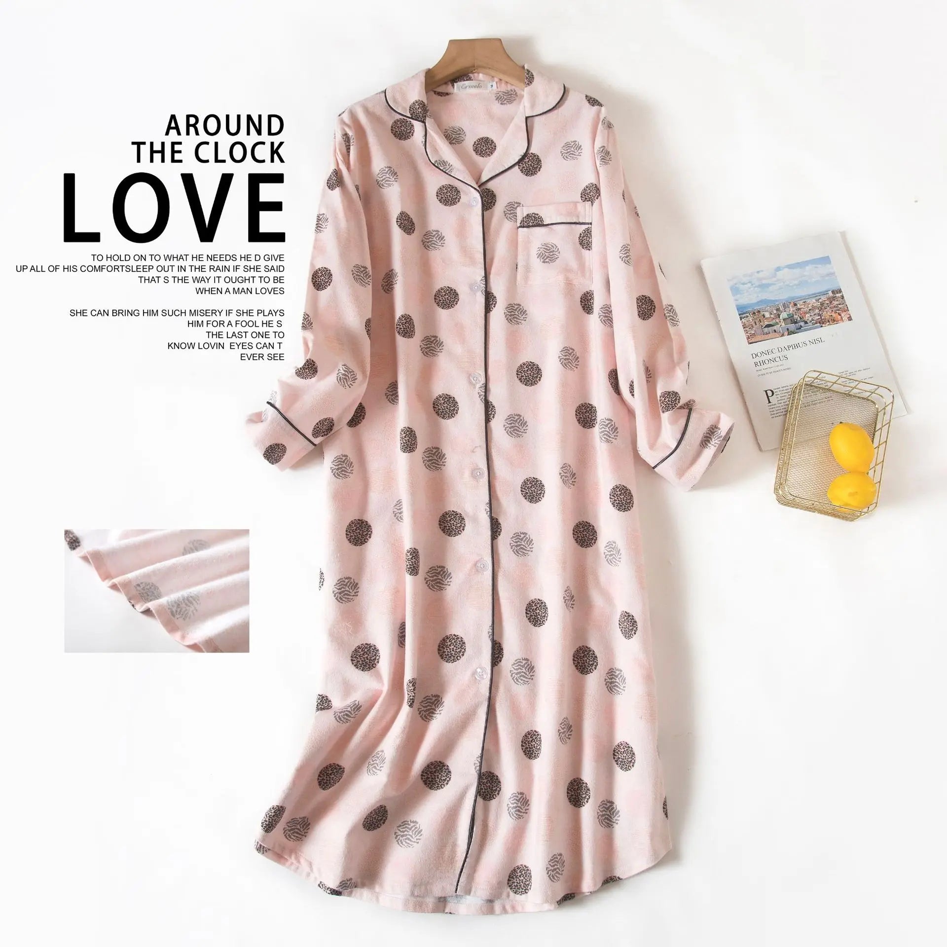 🍒pyjama nightie autumn and winter nightwear for women cotton flannel sleep shirt long sleeve nightshirt button down sleepdress No Flannel Flannel