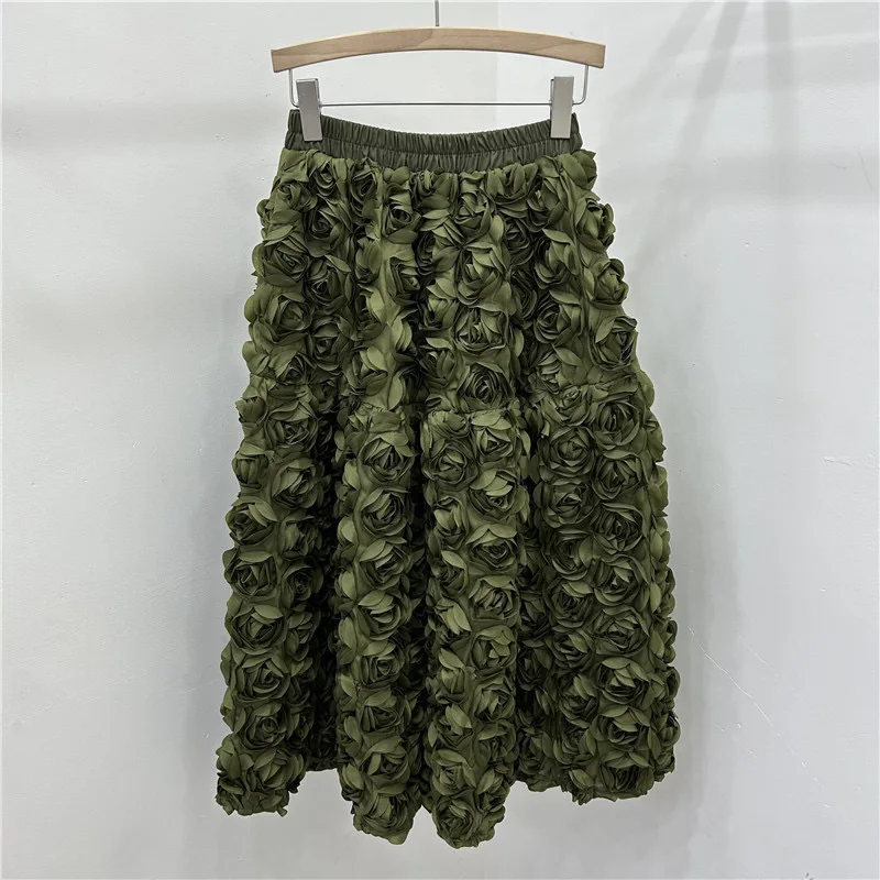 🍒3D flower skirt versatile flower mid-calf a-line fashion wear for women high waist big swing feminine outfit occasion wear party wear chic floral high waist a-line sweet solid colour clothing Pick This Rose And Put It In Your Basket