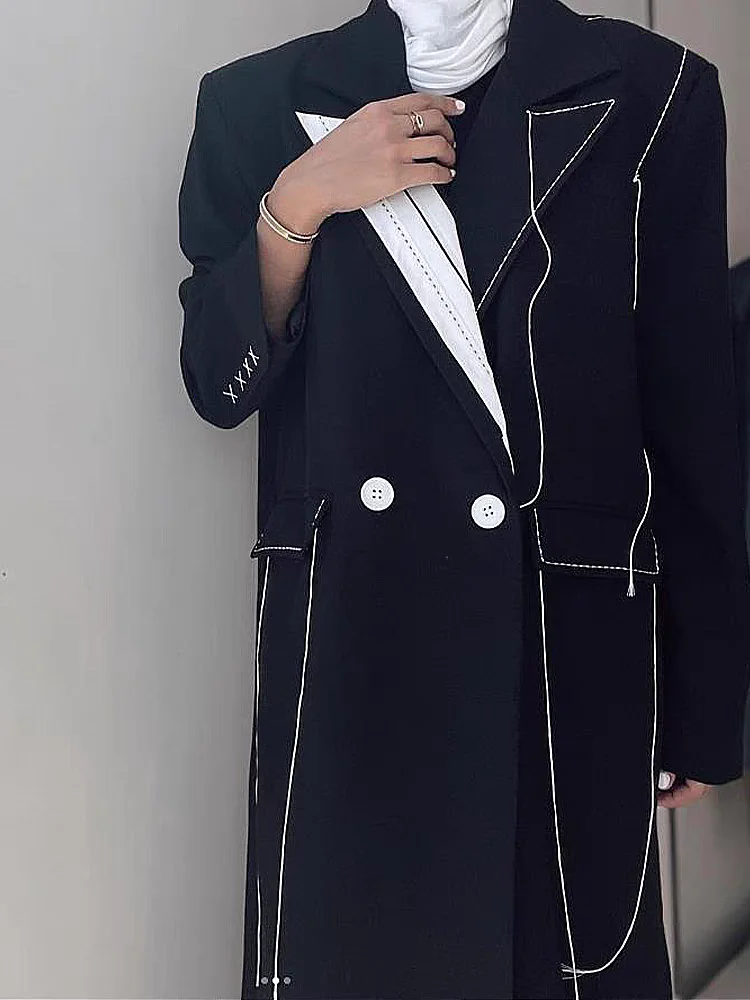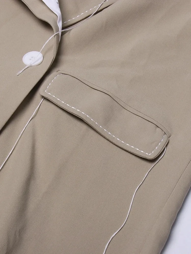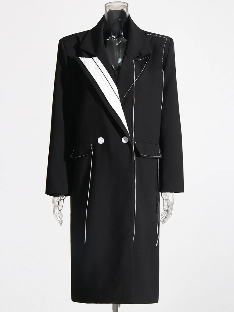 🍒 Colour contrast coat with lapel collar long sleeve overcoat for women with straight patchwork pockets casual spring coat female fashion wear Collar Cool Contrast