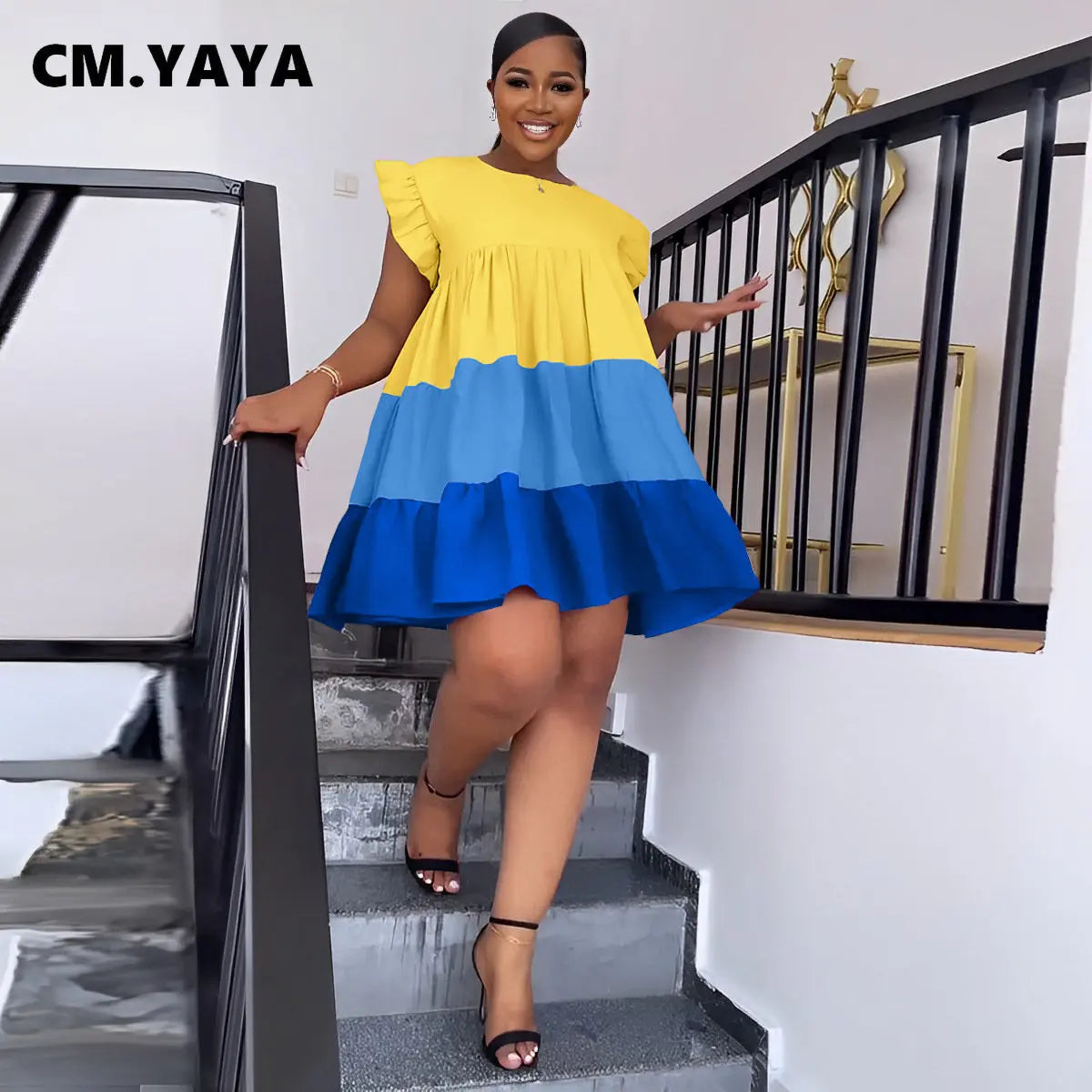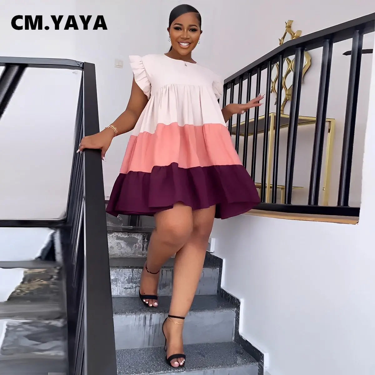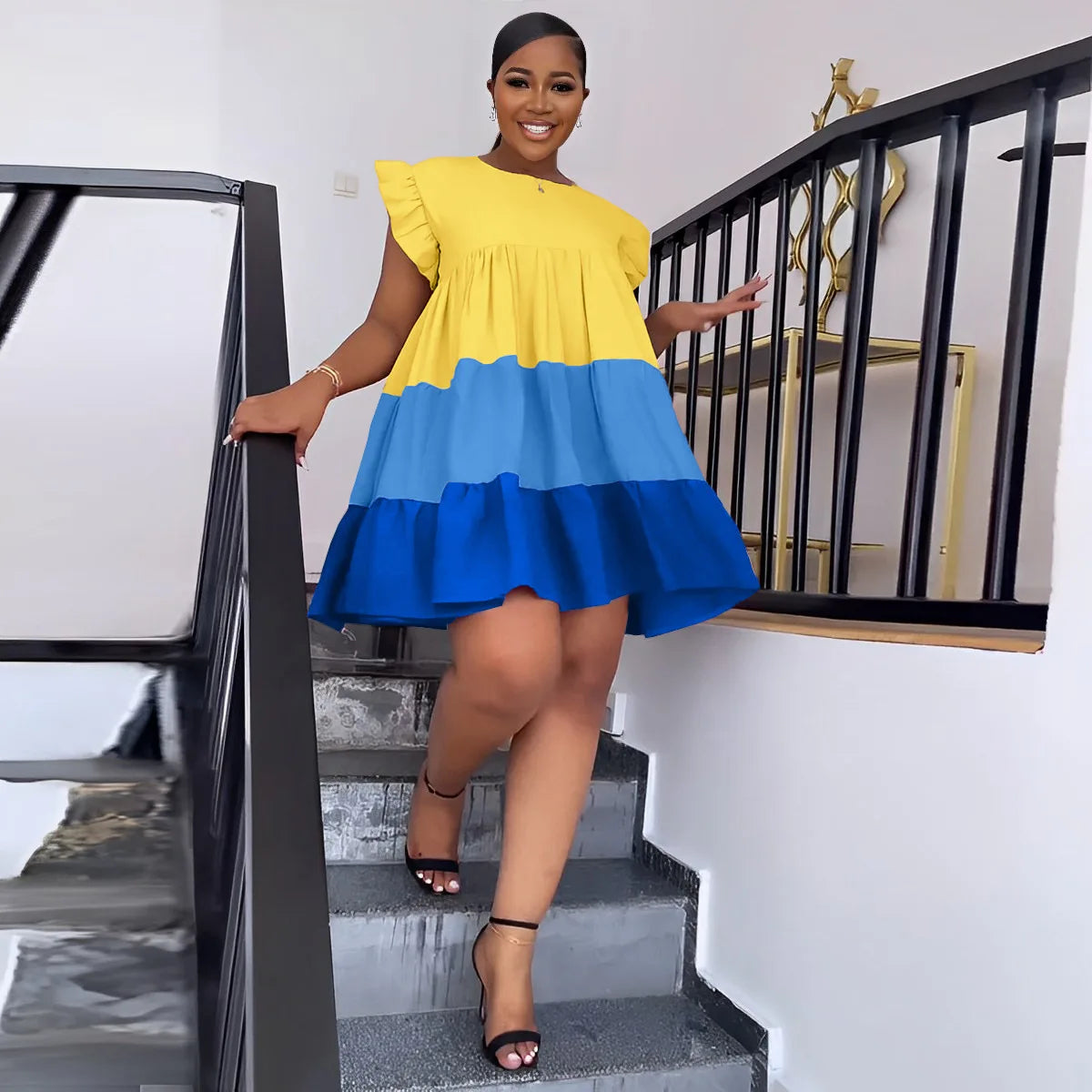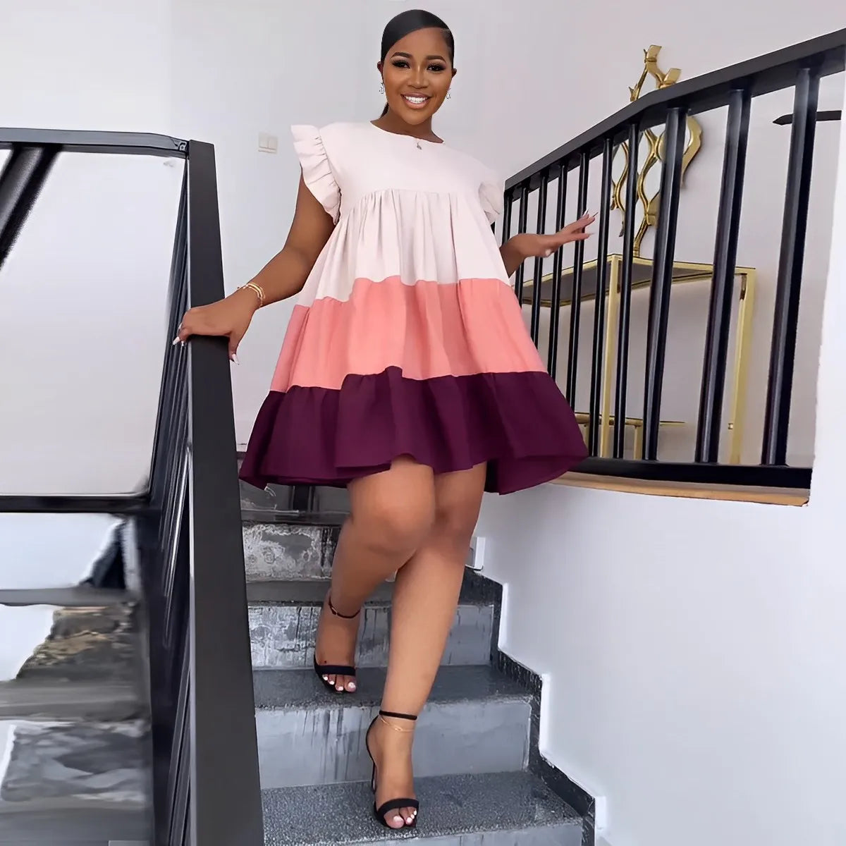 🍒Patchwork ruffle dress short sleeve big swing smock babydoll dress wide stripe chic fashion dresses Get Smitten With A Smock