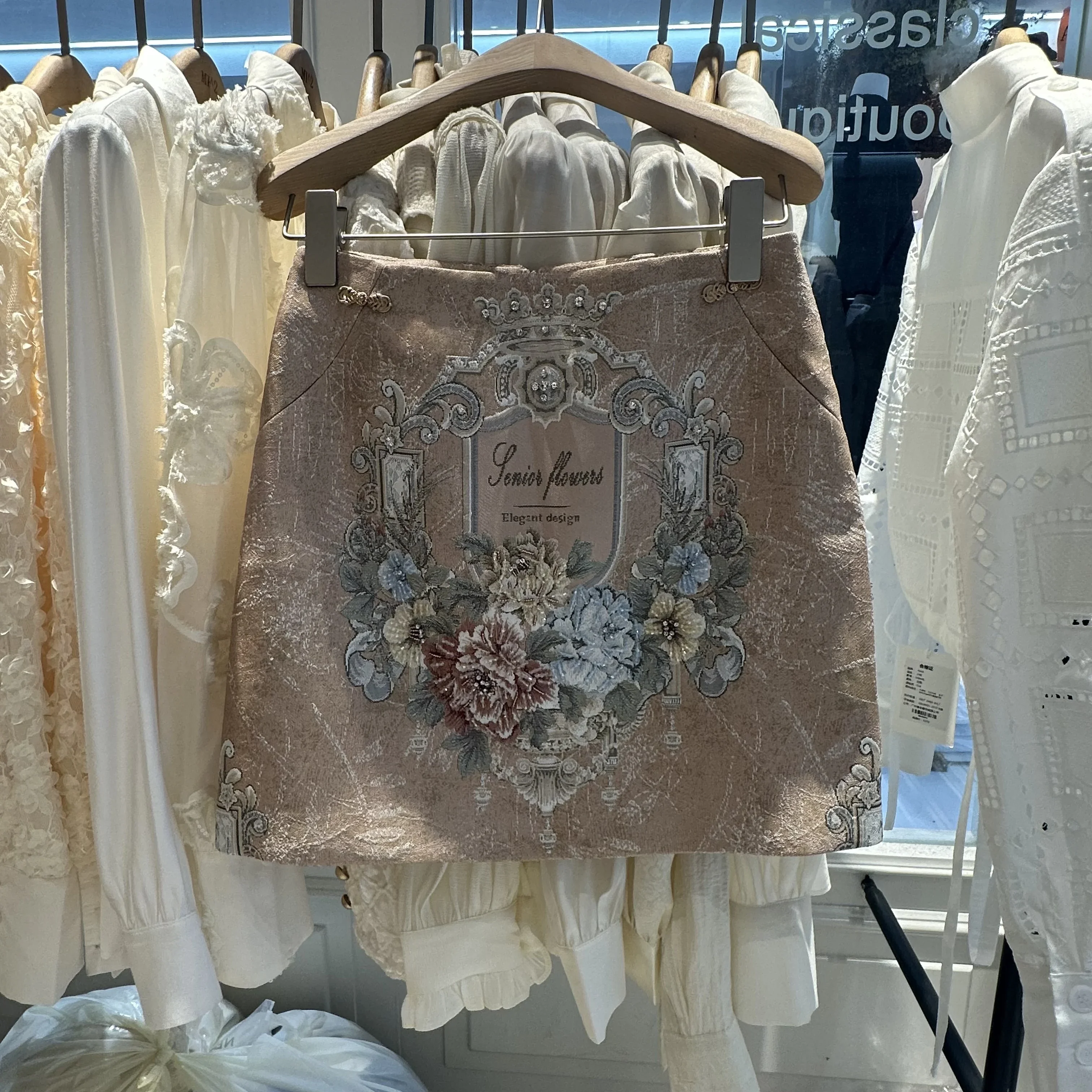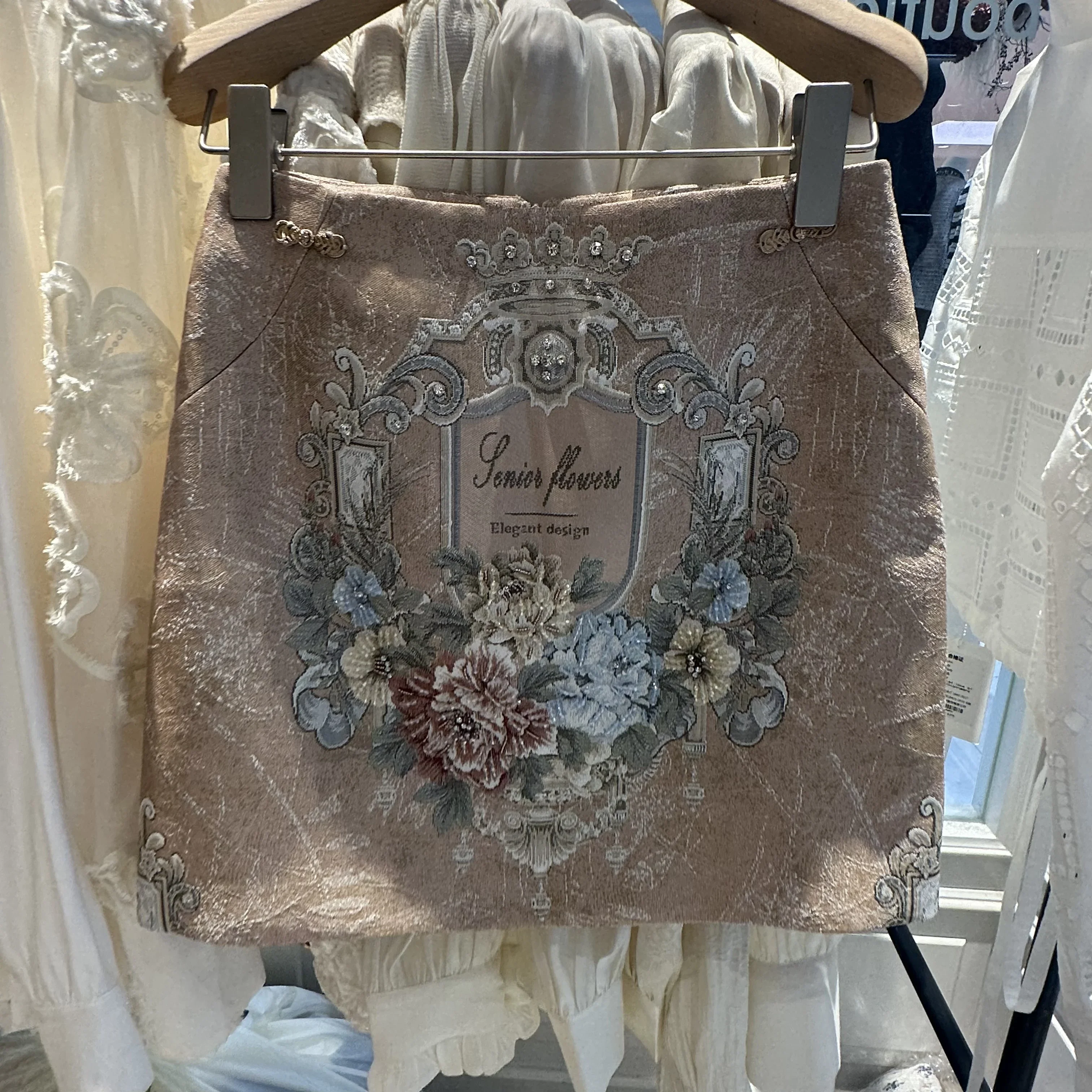 Counter Quality Luxury Diamonds Vintage Embroidery Jacquard Fabric Short Skirt For Women 2024 Spring New High Waist Slim Skirt