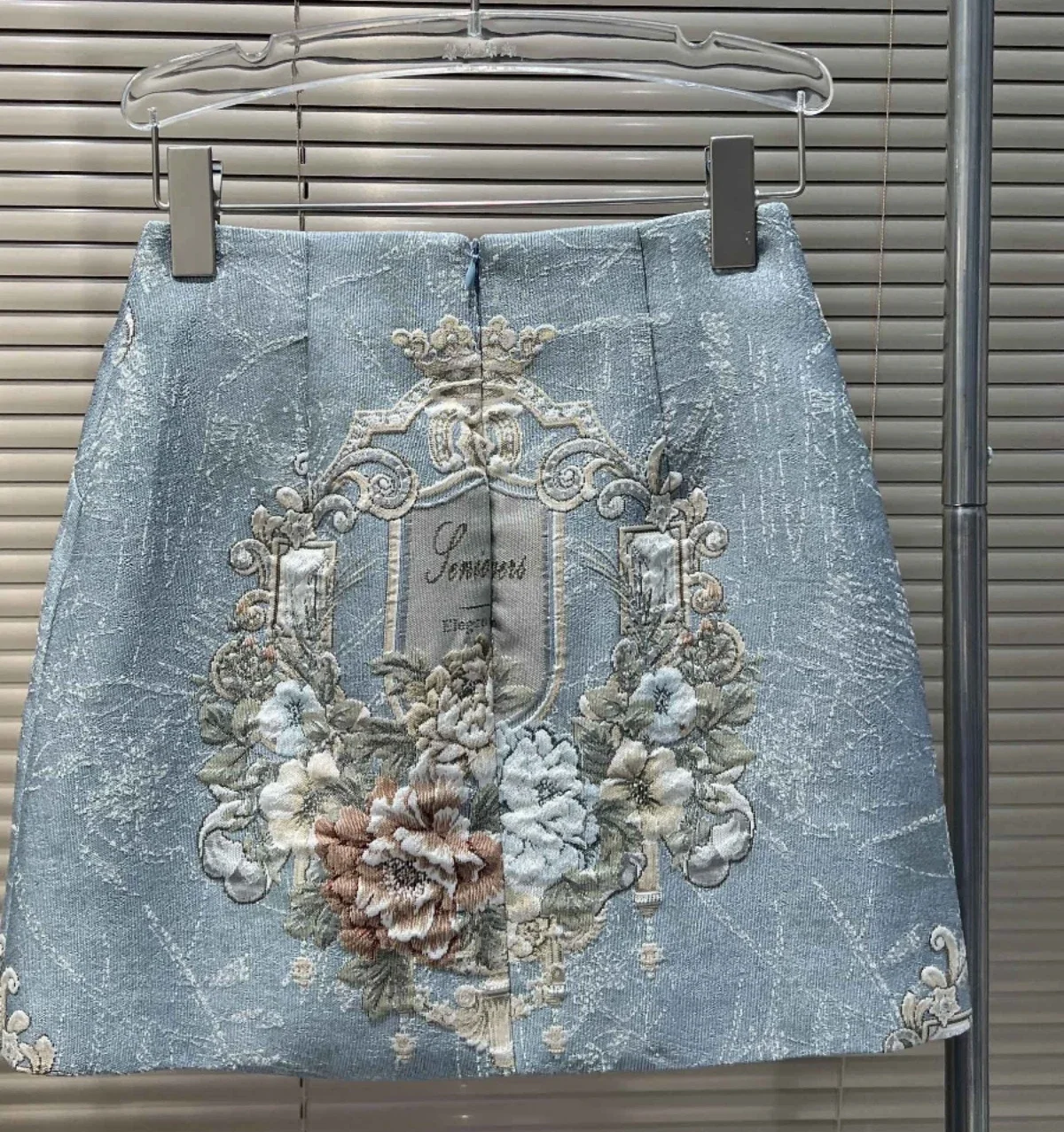 🍒vintage evembroiderd mini skirt high waist quality luxury diamonds short jeans skirt women Jacquard fabric high street quality casual clothing for women female fashion wear smart casual party wear Vintage Vantage