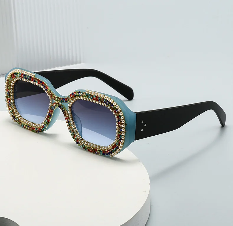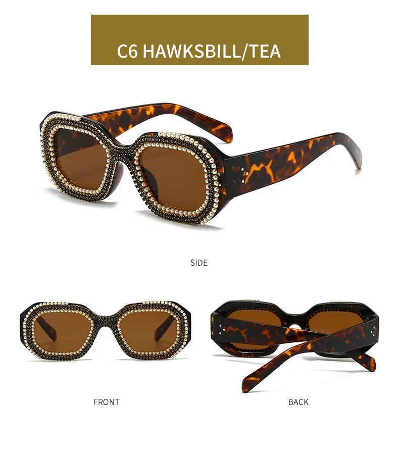🍒Diamond square sunglasses with pearls women fashion luxury rhinestone trendy shades for women female sun shades polygon eyewear for women uv 400 protection Have Your Say In A Pearly Cool Way