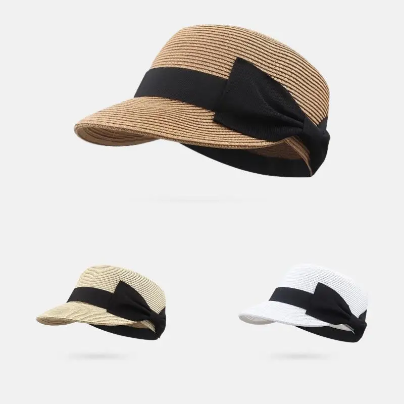 🍒Hat with bow grass straw hat woven cap duckbill hat women sun protection cap for summer outdoor hat fashion DUCK Big Hat BILLs