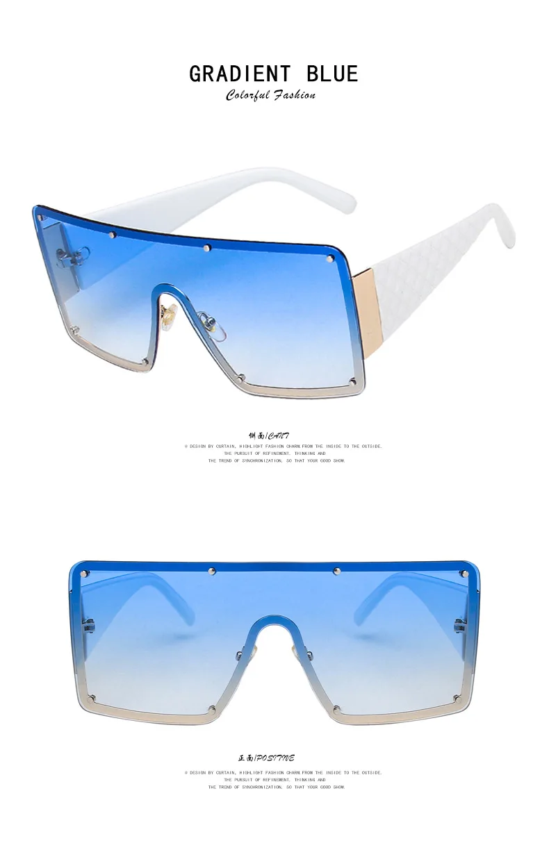 🍒Large frame sunglasses unisex womens rimless one-piece wide-rimmed sunglasses fashion eyeglasses UV400 protection See Through Fun Sunnies