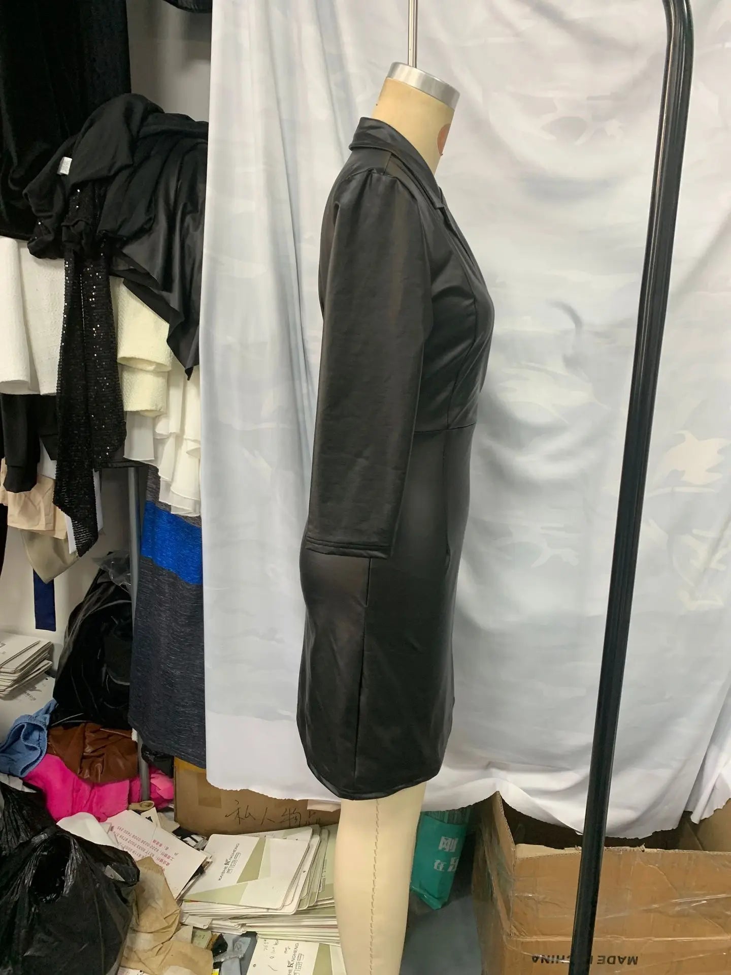 🍒Black faux leather dress womens lapel outfit chic occasion wear female fashion clothing smartwear v-neck bodycon autumn and winter wear Lavish Liquorice Leather Look