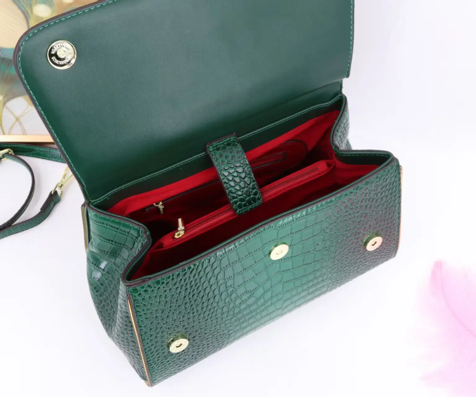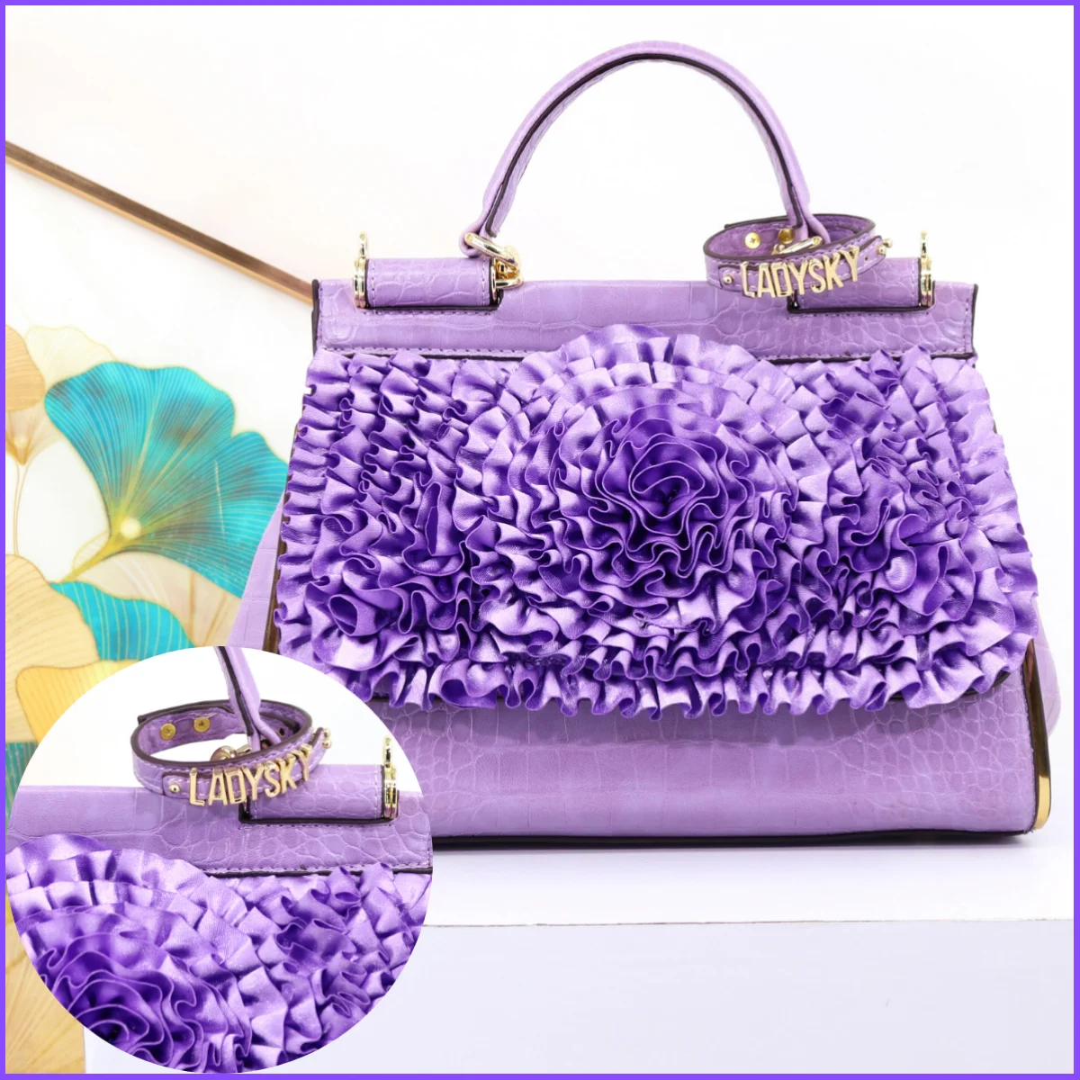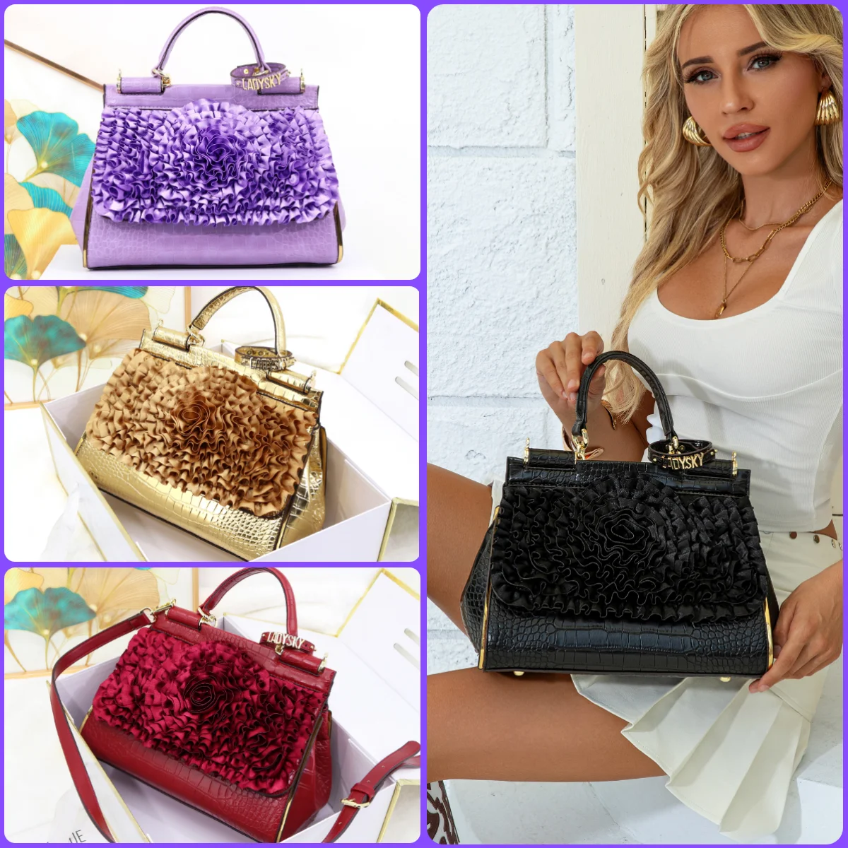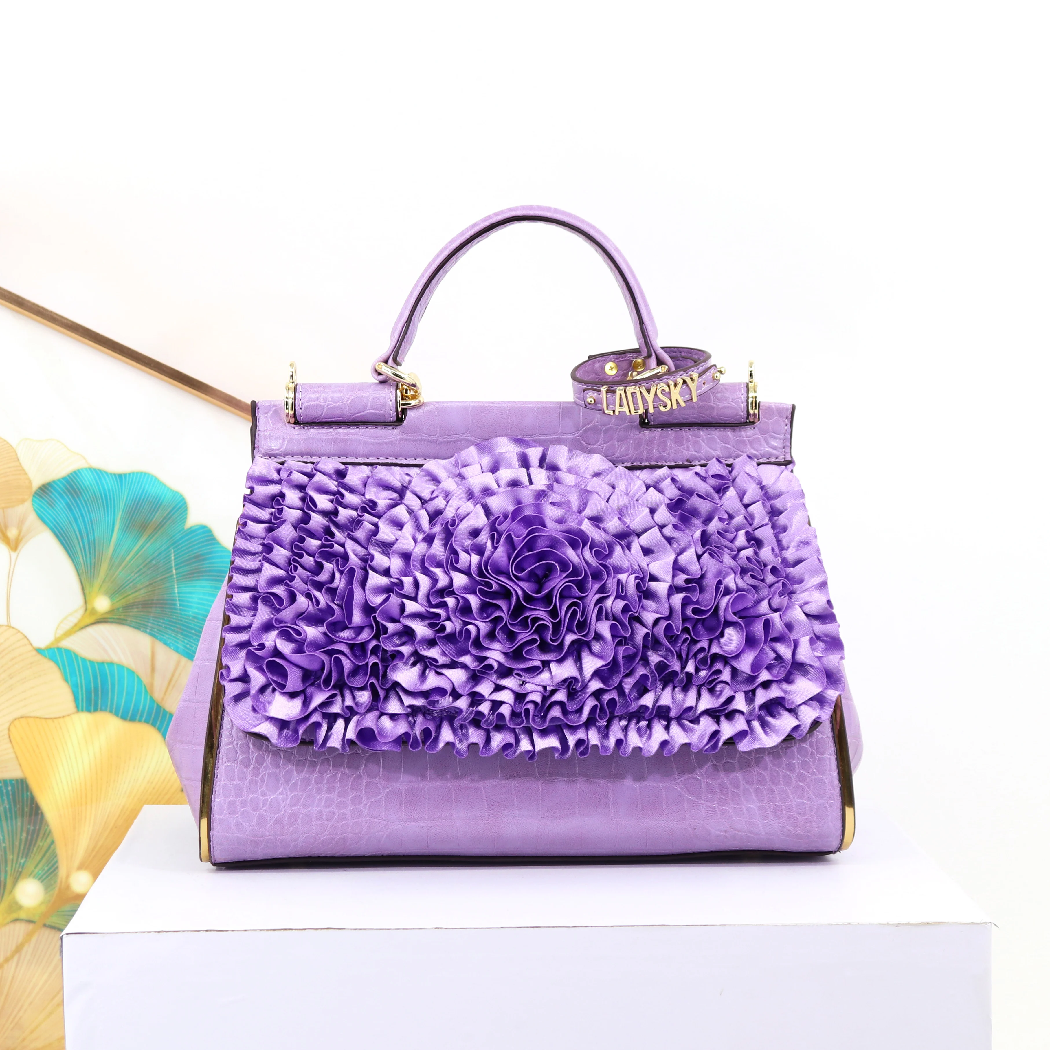 🍒3D foral handbag women fashion ladies bag luxury crossbody handbag crocodile elegant occasion accessory lotus leaf flower bag female bag with grab handle 30 cm Rose Gold