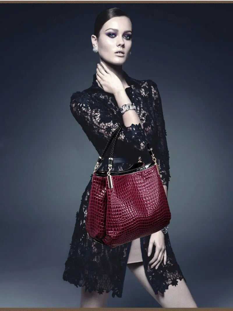 🍒Faux crocodile leather bag designer for women handbags womens summer bag top handle bags ladies casual tote Dial Up On Croc