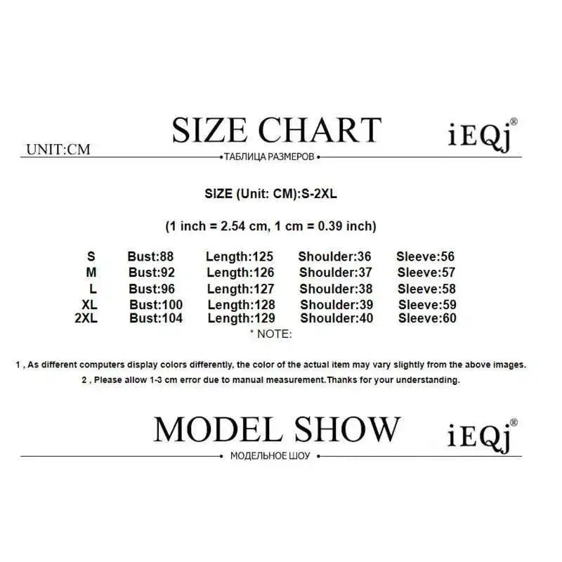 2XL Bust:104 Length:129 Shoulder:40 Sleeve:60