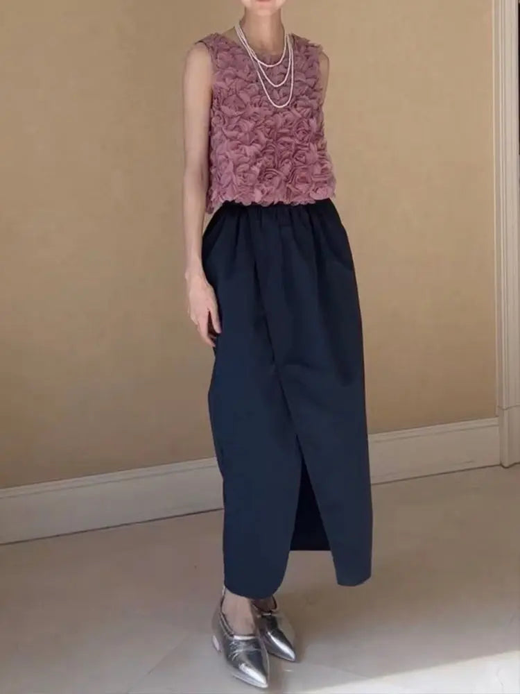 🍒Purple 3D rose flowers vest crop top womens summer fashion sleeveless tank top camisole outerwear feminie party occasion wear