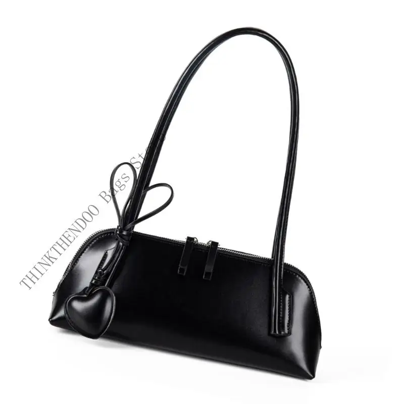 🍒Shoulder bag under arm for women with detachable heart charm pu leather handbag spacious underarm bags east west bag grab bag No Need To Go West To Get This East