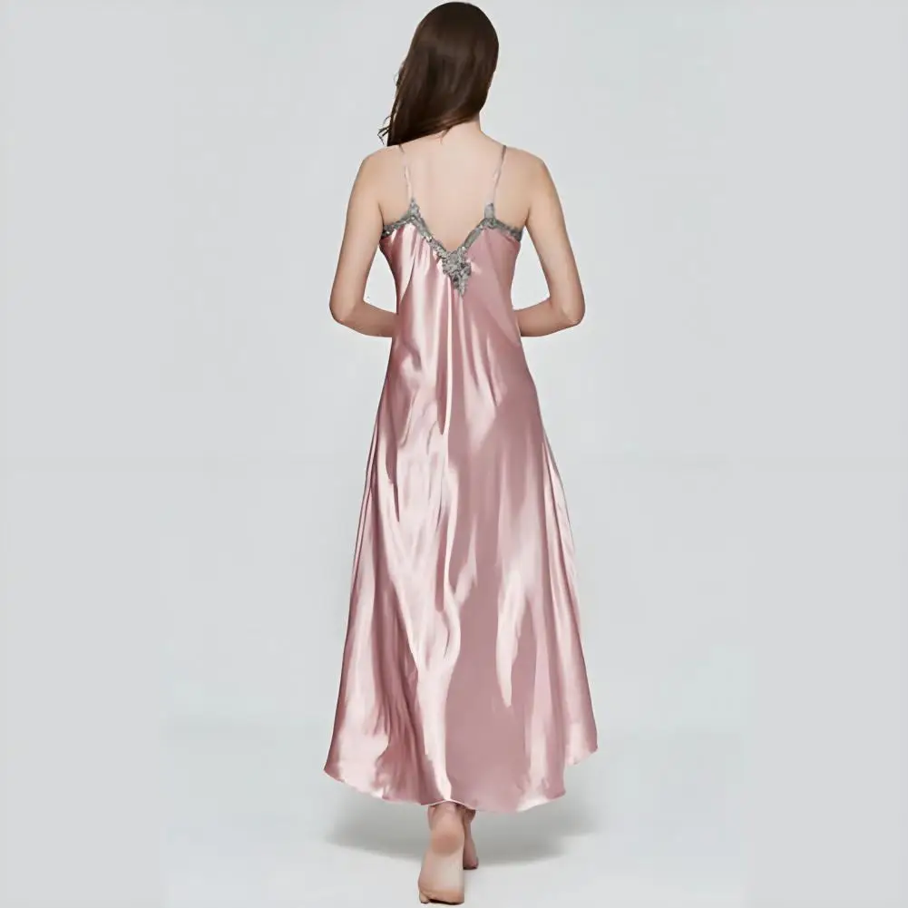 🍒Satin sleepwear for women house sleepwear dress gown wth spaghetti strap loose lingerie lace trim nightwear elegant maxi sleepwear chemise nightdress with v neck front and back Luxurate Lovely Lingerie Luxurate