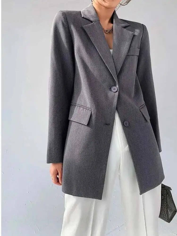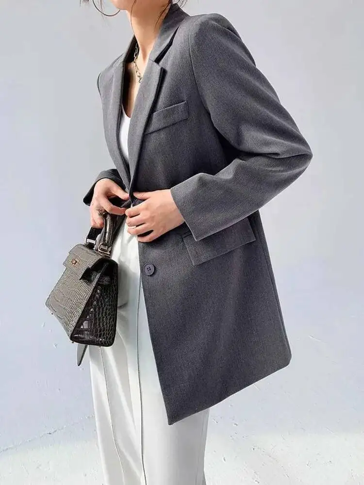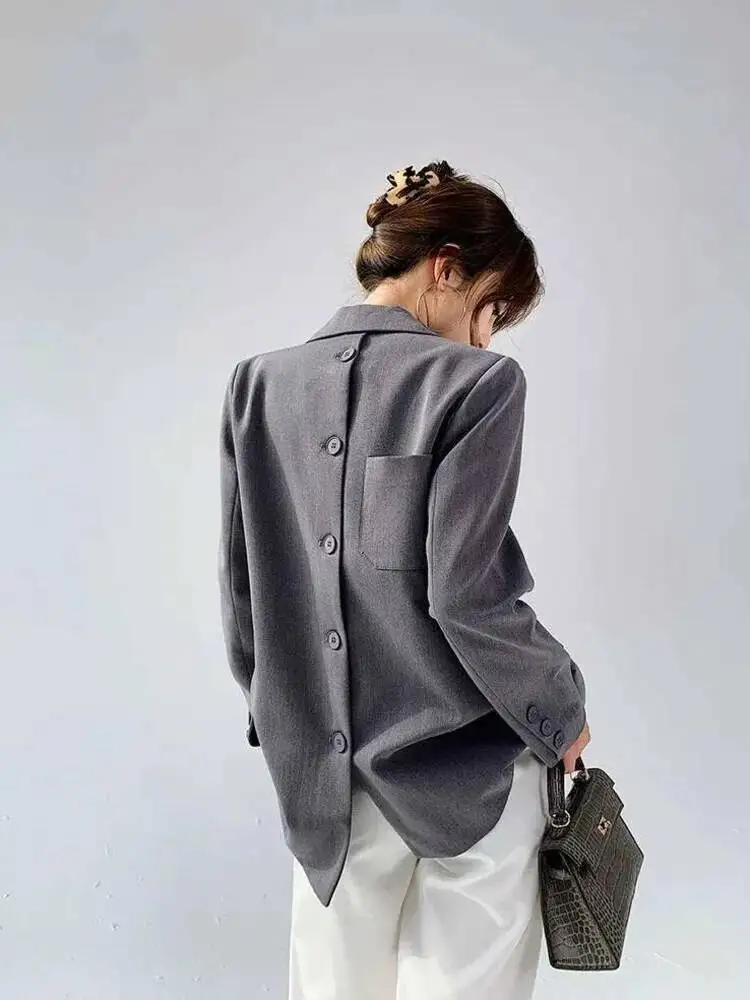 🍒Back button blazer designer with upper back pocket outerwear clothes for women grey lapel long sleeve jacket fashion female coat spring chic occasion wear Put This In Your BACK POCKET For That BLAZERing Hot Occasion