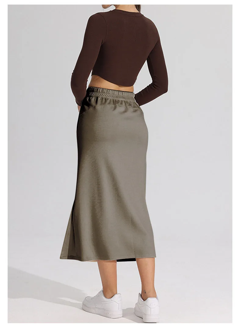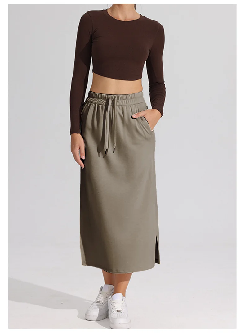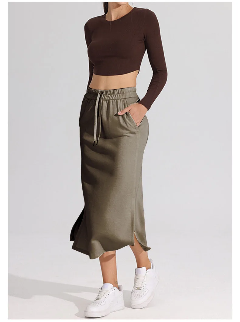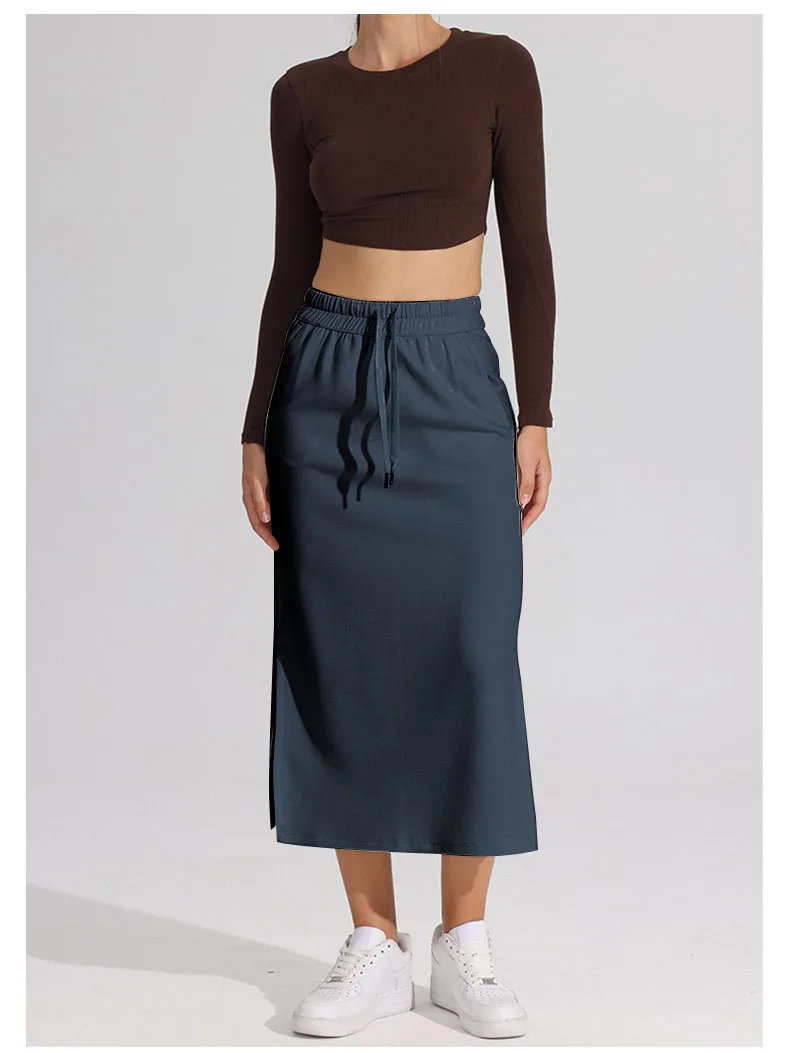 Latest Design Modal Fabric Lulu Wrap Women's Skirts Loose Casual Size Slit Plus Size Long Skirt Outdoor All in Match Sweat Skirt