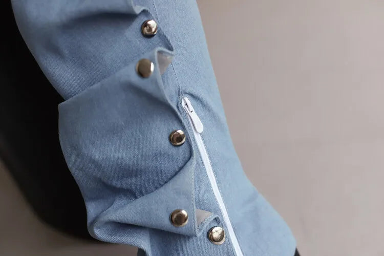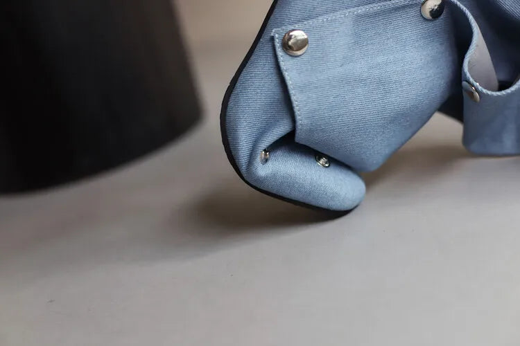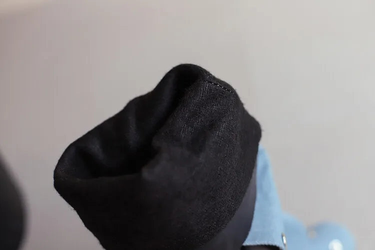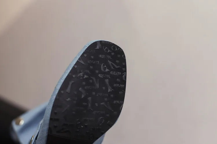 🍒Denim boots for Women blue multi snap-fastener pleated shoes with zip wide calf length boots winter footwear Cute Cowboy