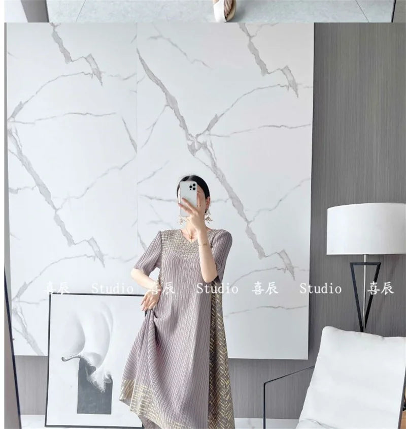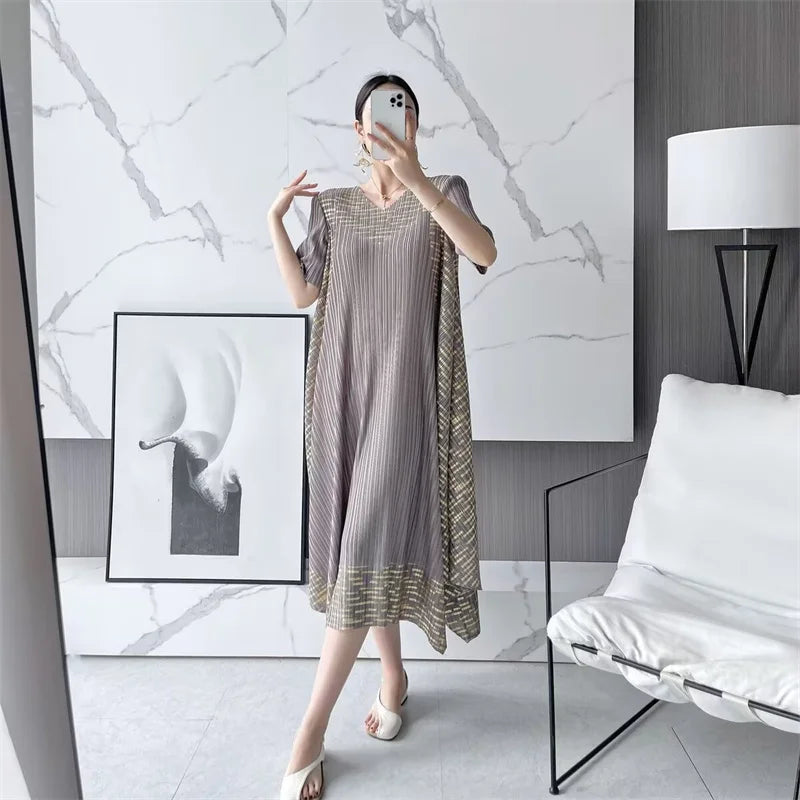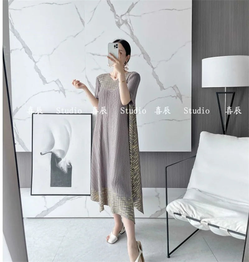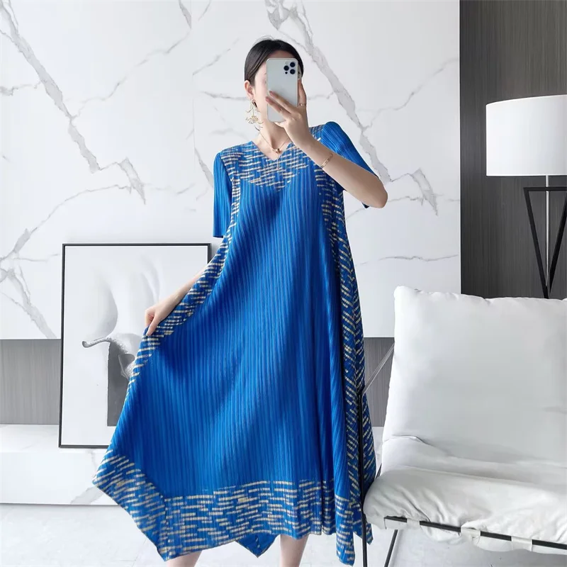 🍒Long dresses spring and autumn clothes plus size outfit a-line smart casual women pleated ring printed party wear A- Swirl Of a Dress