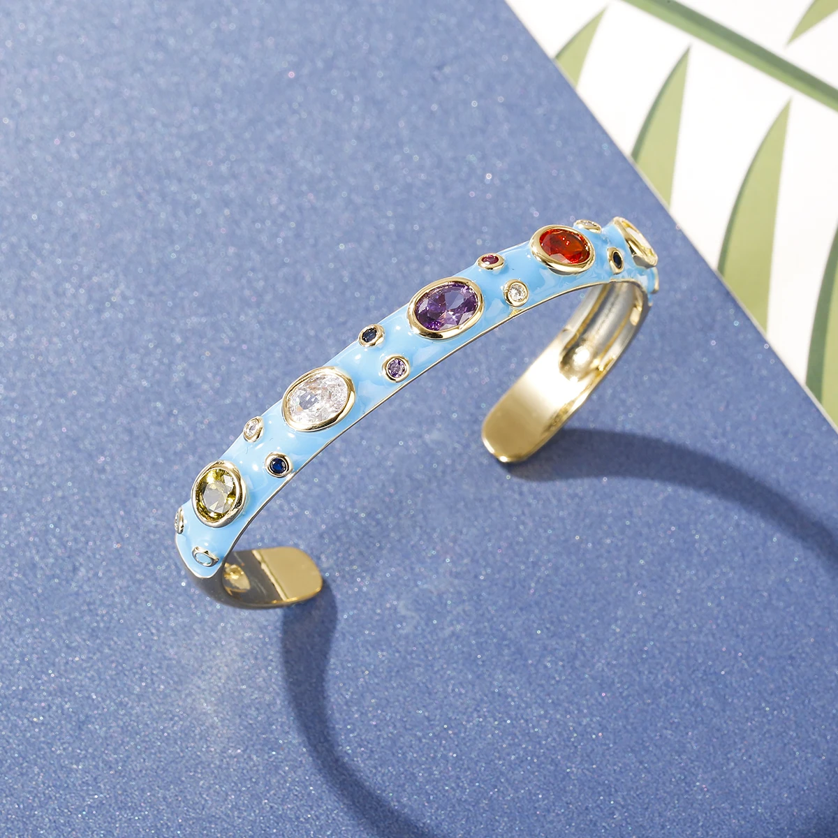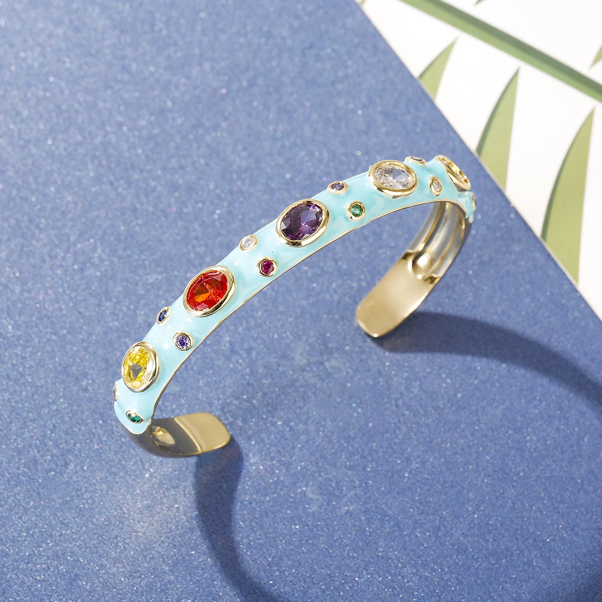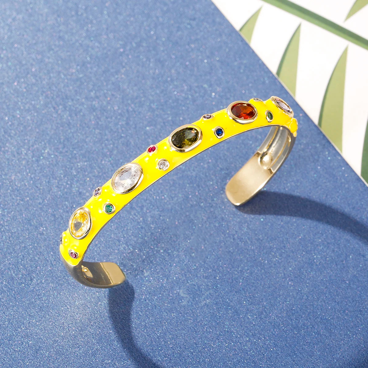 Fashion Charm Drip Oil Zircon Bracelet For Women Copper Adjustable Bangles Gift Accessories
