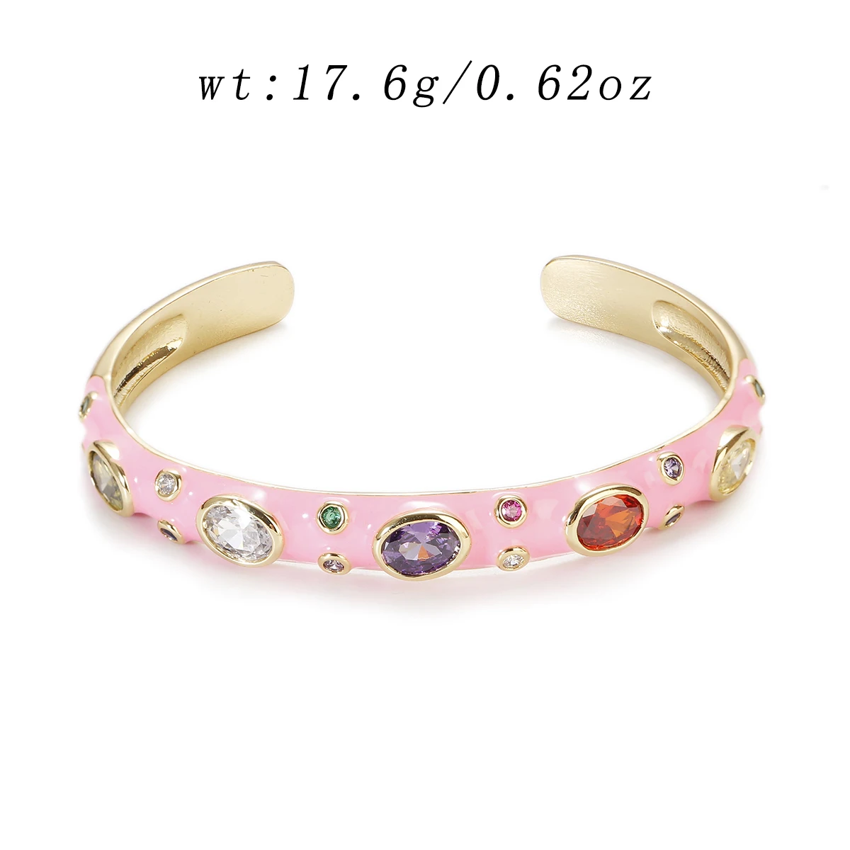 🍒Luxury zircron stone bangle colour crystal bracelet gold color for women summer classic pink oil drip jewlery thin cuff bracelets rhinestones gifts for women