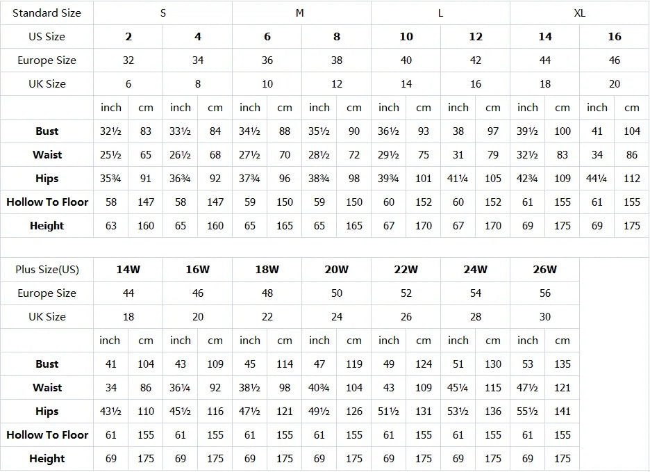size_info: {"sizeInfoList":[{"length":{"cm":"83","inch":"32.68"},"size":"2","vid":-1},{"length":{"cm":"84","inch":"33.07"},"size":"4","vid":-2},{"length":{"cm":"88","inch":"34.65"},"size":"6","vid":-3},{"length":{"cm":"90","inch":"35.43"},"size":"8","vid":-4},{"length":{"cm":"93","inch":"36.61"},"size":"10","vid":-5},{"length":{"cm":"97","inch":"38.19"},"size":"12","vid":-6},{"length":{"cm":"100","inch":"39.37"},"size":"14","vid":-7},{"length":{"cm":"104","inch":"40.94"},"size":"16","vid":-8},{"length":{"cm":"109","inch":"42.91"},"size":"16W","vid":-9},{"length":{"cm":"114","inch":"44.88"},"size":"18W","vid":-10},{"length":{"cm":"104","inch":"40.94"},"size":"14W","vid":-11},{"length":{"cm":"bust","inch":"bust"},"size":"定制尺码","vid":-12}]}