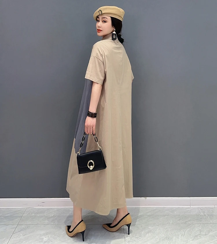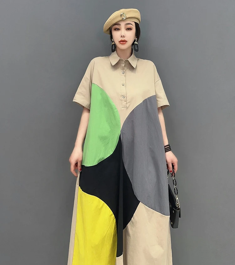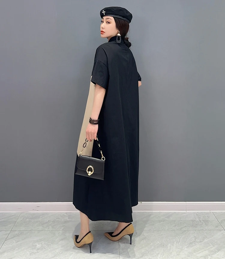 🍒Black patchwork dress loose fit smart casual woman summer shirt style outfit trendy large womens fashion