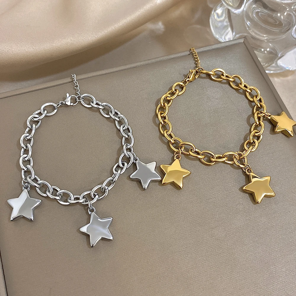 🍒Chunky star bracelet thick stainless steel pendant chain silver bracelet for women gold plated stars wrist jewellery you will be STAR-tled When You Get This