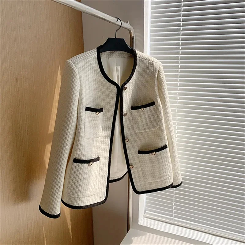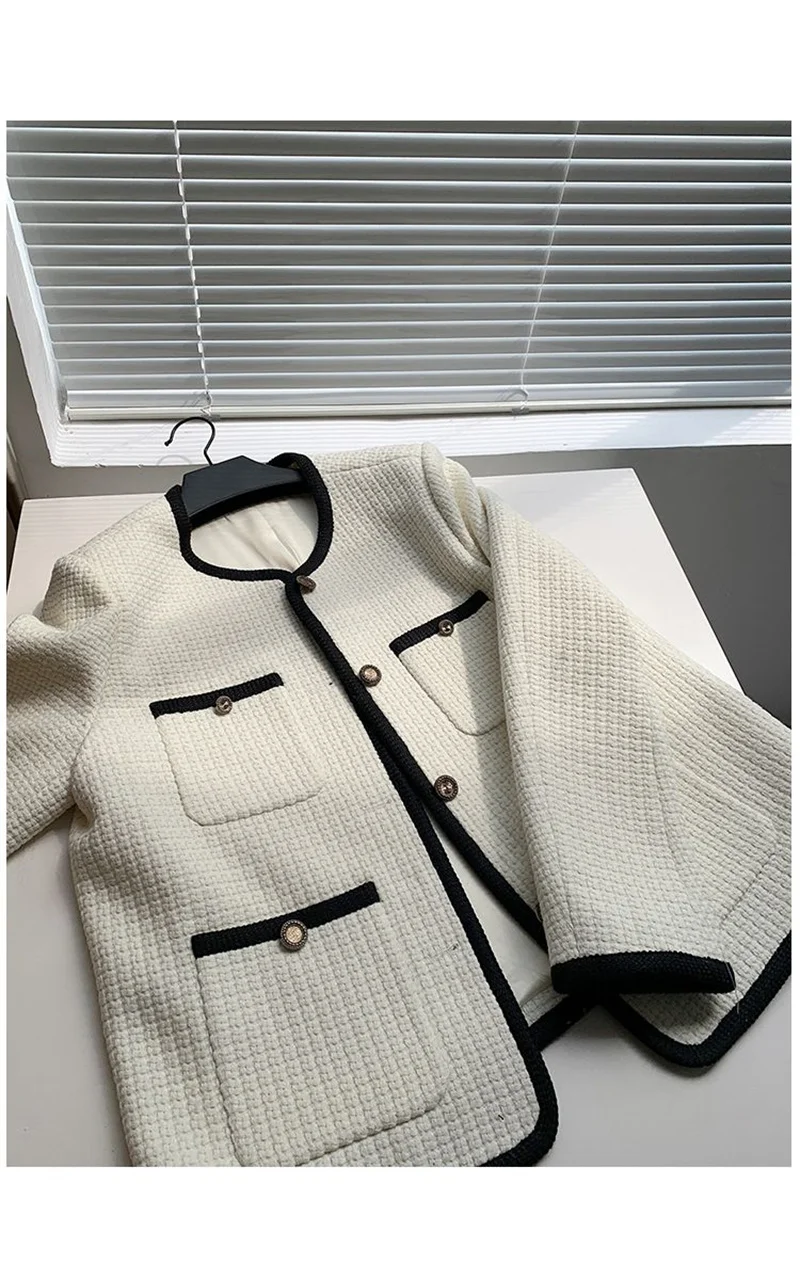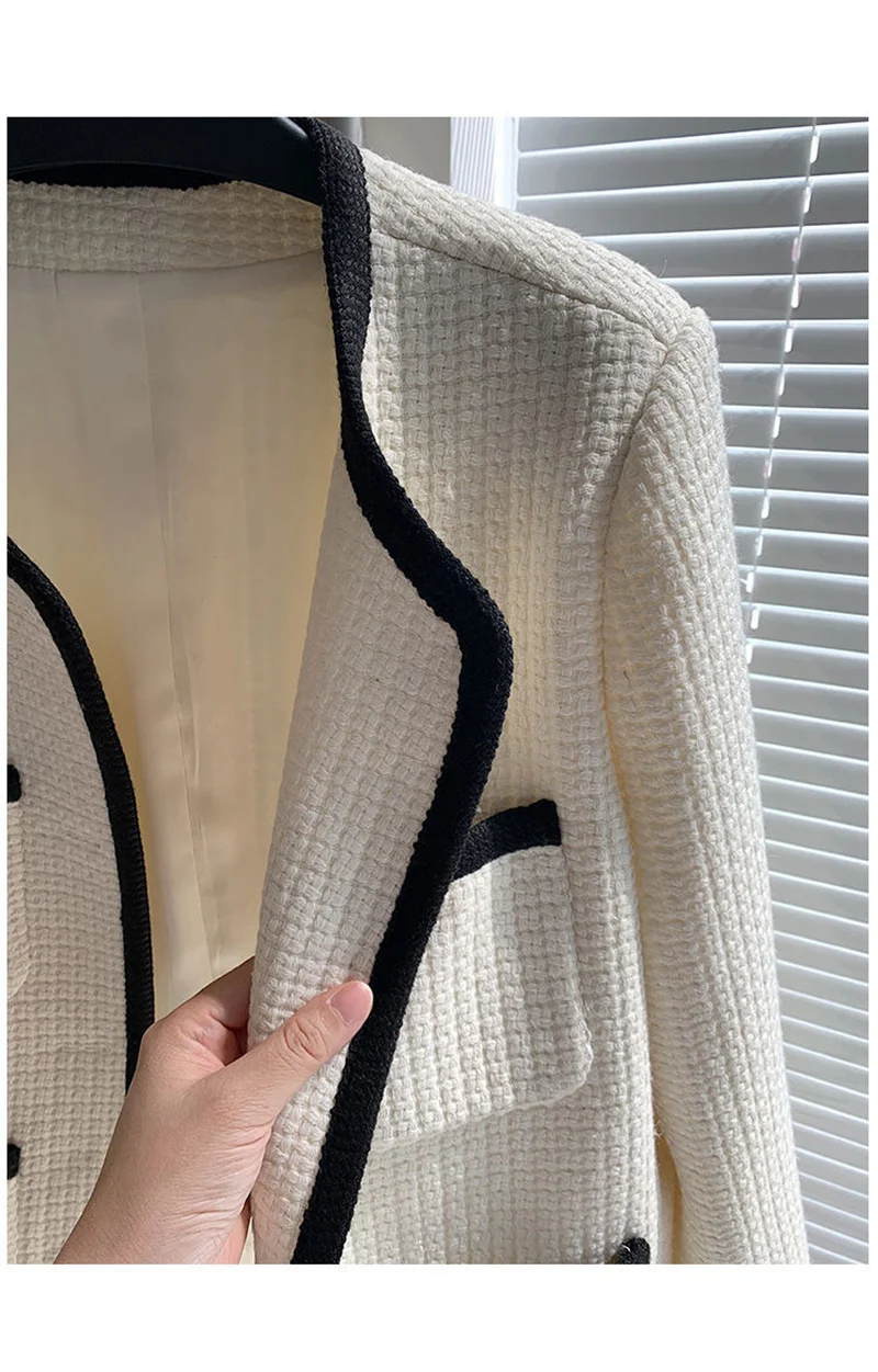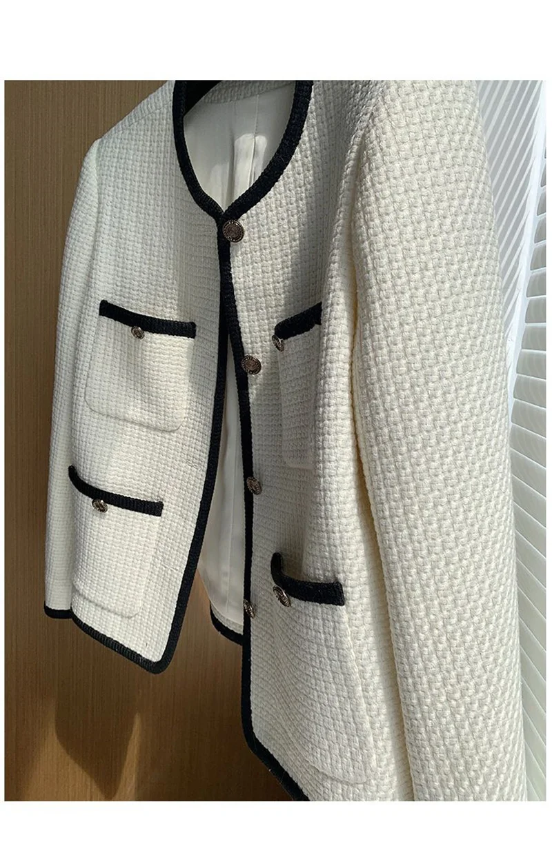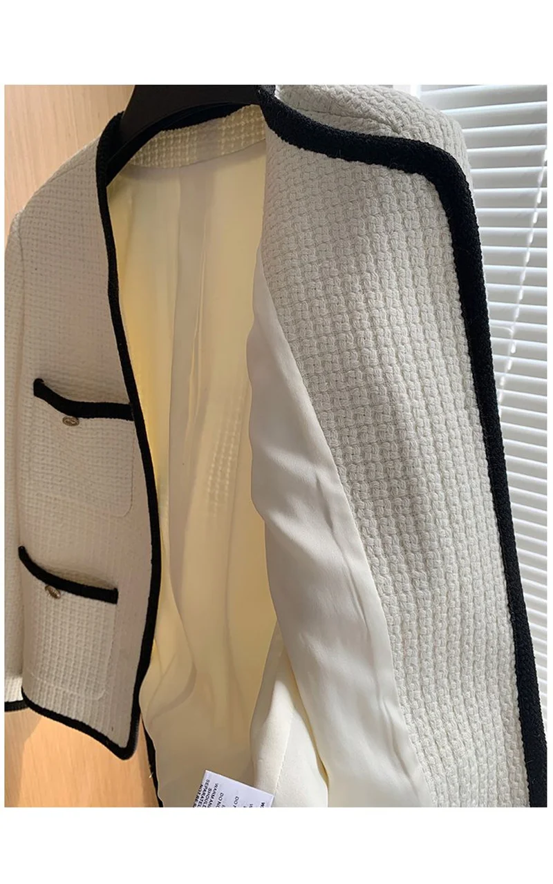 🍒Quilted lining jacket womens designer o-neck contrast tweed top Loose Fashion Versatile Coat Women Channel Likes This So Will You