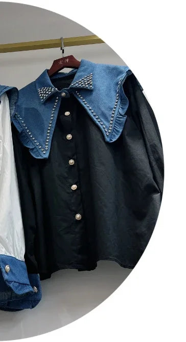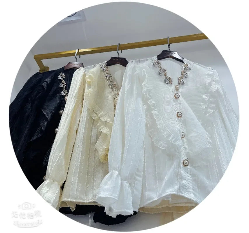 🍒Sequin shirt with beading ruffle blouse for women black occasion shirt Y2k long sleeve occasion top feminine fashion evening wear party wear tops Look Frilling In Your Frilly Frills