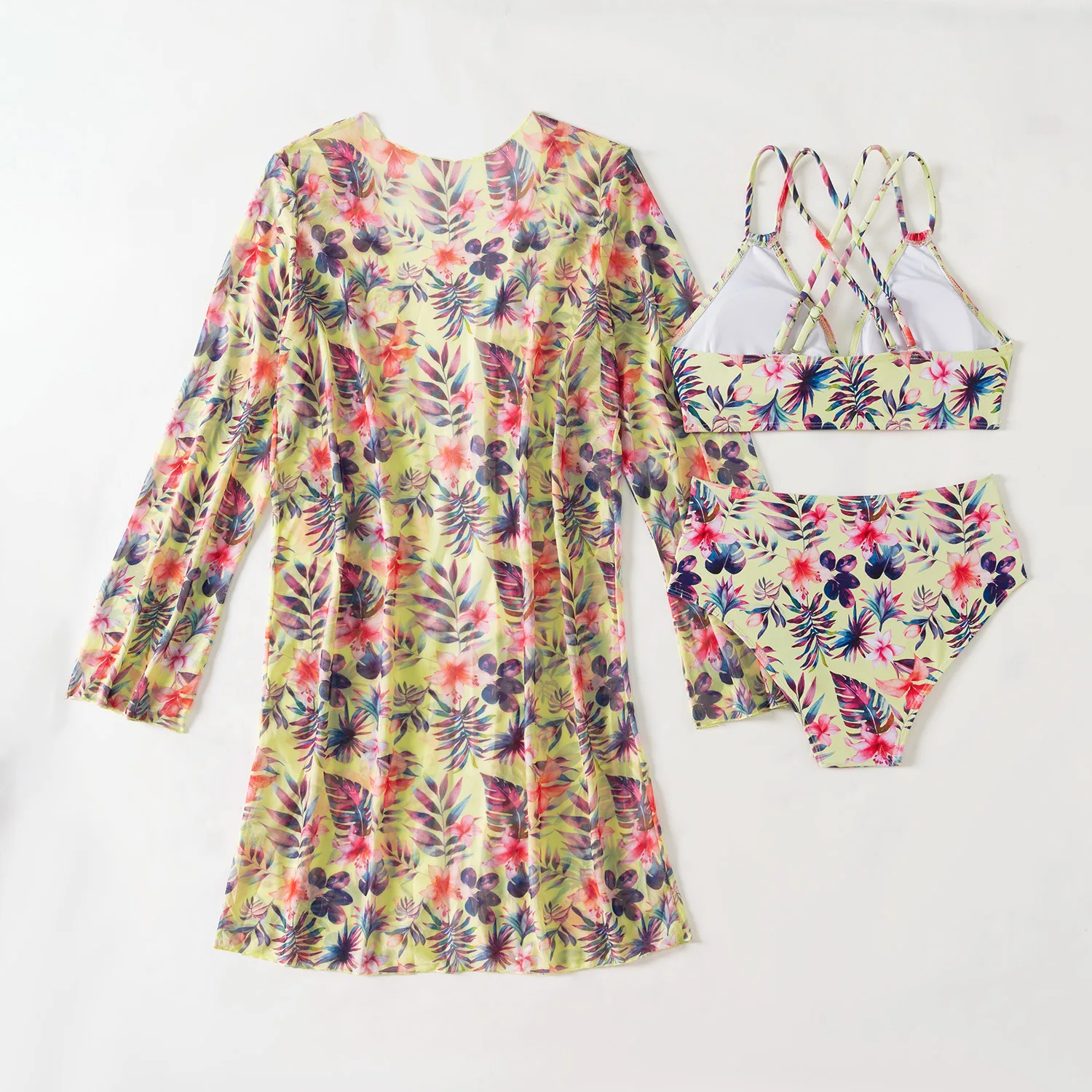 🍒Women's three-piece swimwear beach bathing suits brazilian bikini set pool bather female swim suits beach cover up Suited For beachwear
