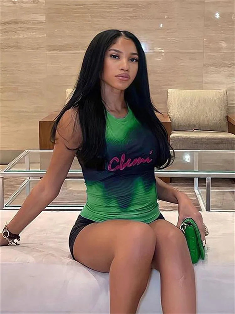 🍒Tie dye sleeveless top mesh see through crop top women party vest hot club wear Y2K Slim Clothing Get Your Greens
