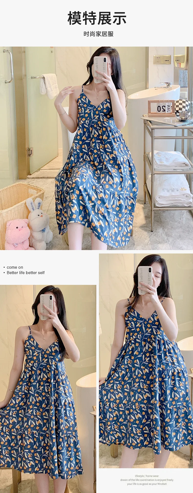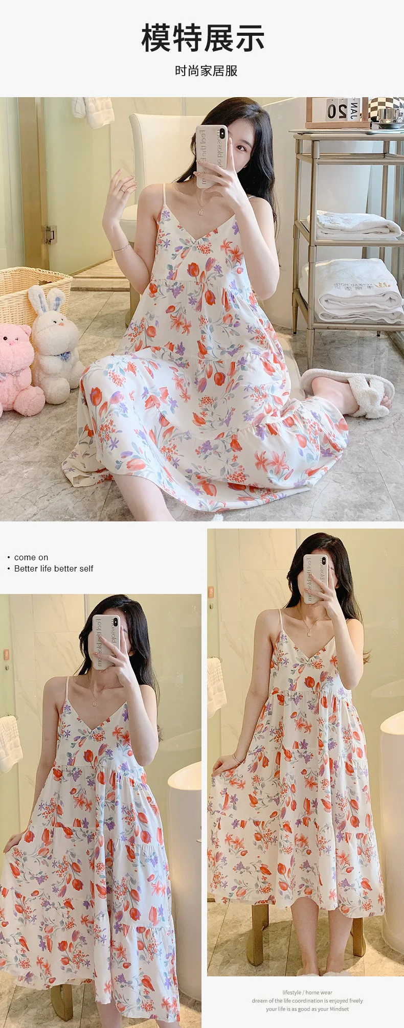 🍒Sleeveless night dress for Women breathable viscose cotton camisole nightie floral night dress loungewear summer wear holidaywear nightwear Fresh Florals