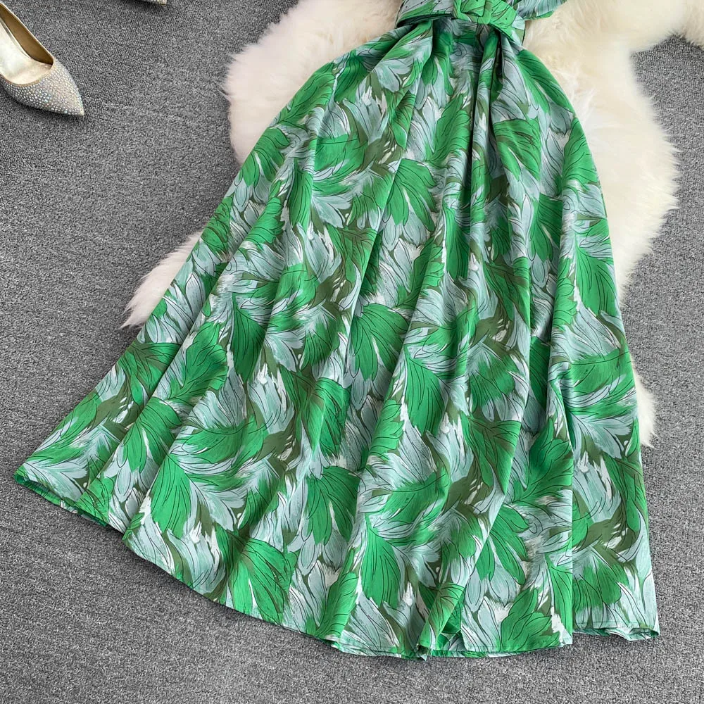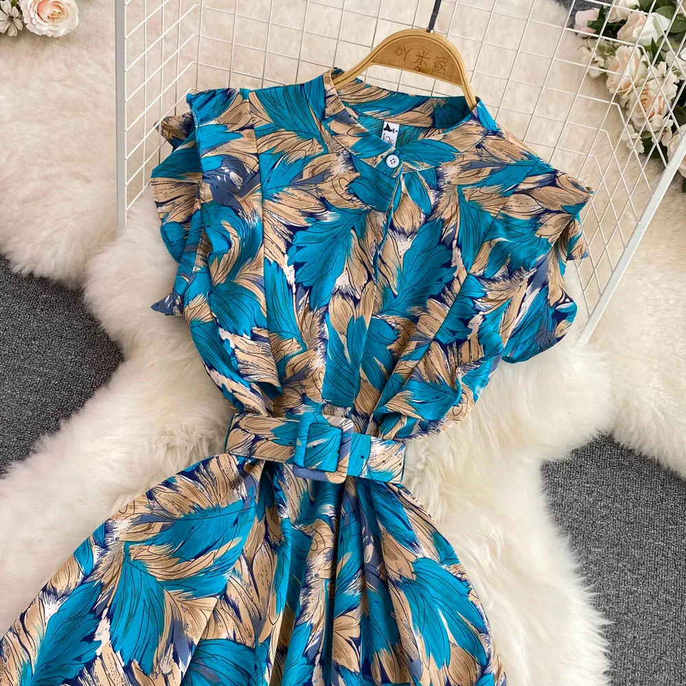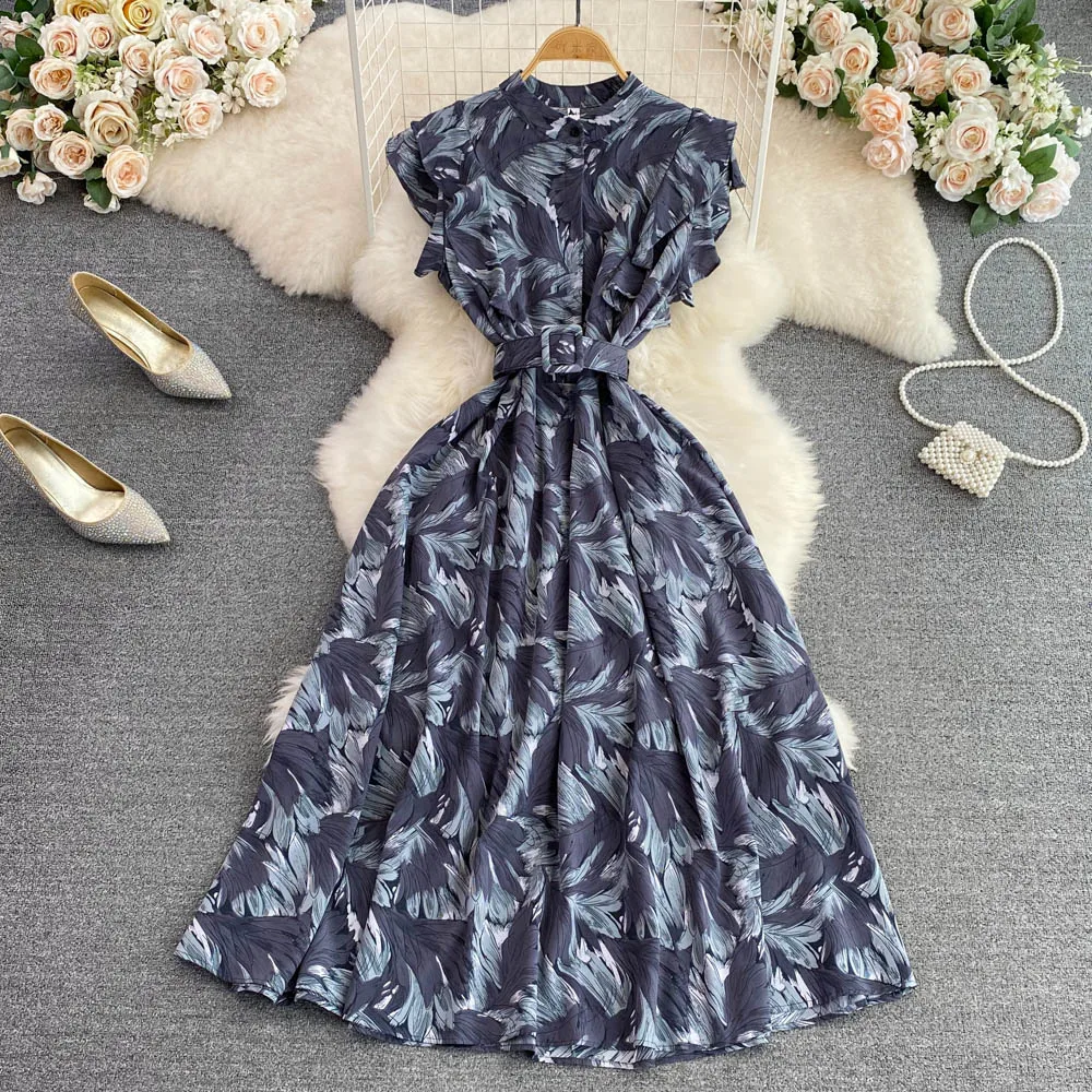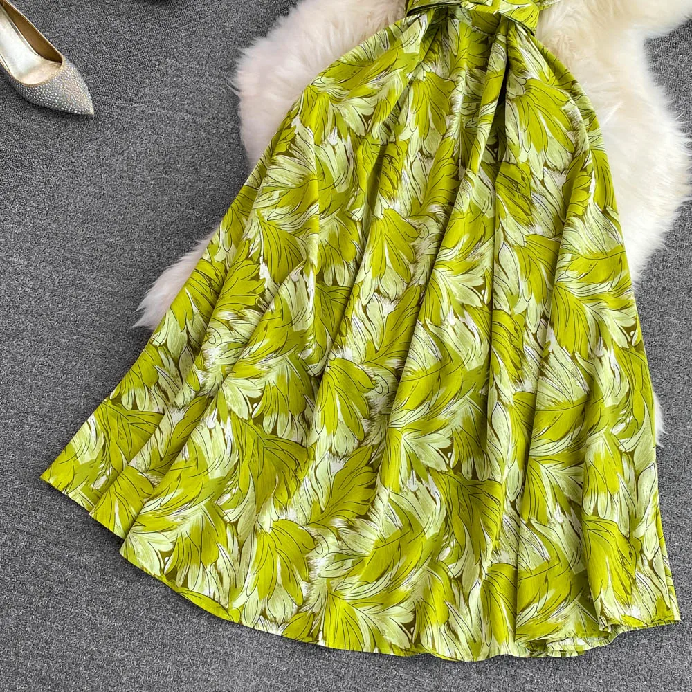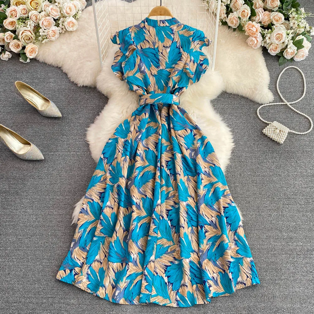 🍒 Printed midi dress high waist sleeveless a-line outfits elegant stand collar ruffle smart casual summer feminine fashion style Dont LEAF-e This In Your Basket Get This And You Will Be SKY High With Happiness