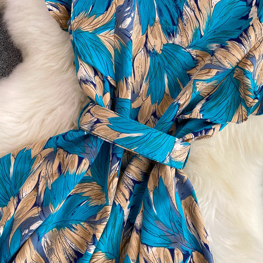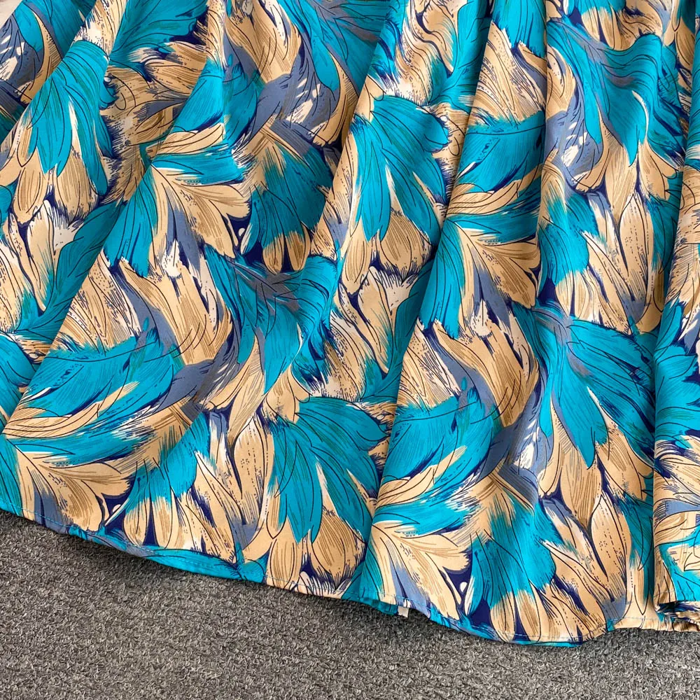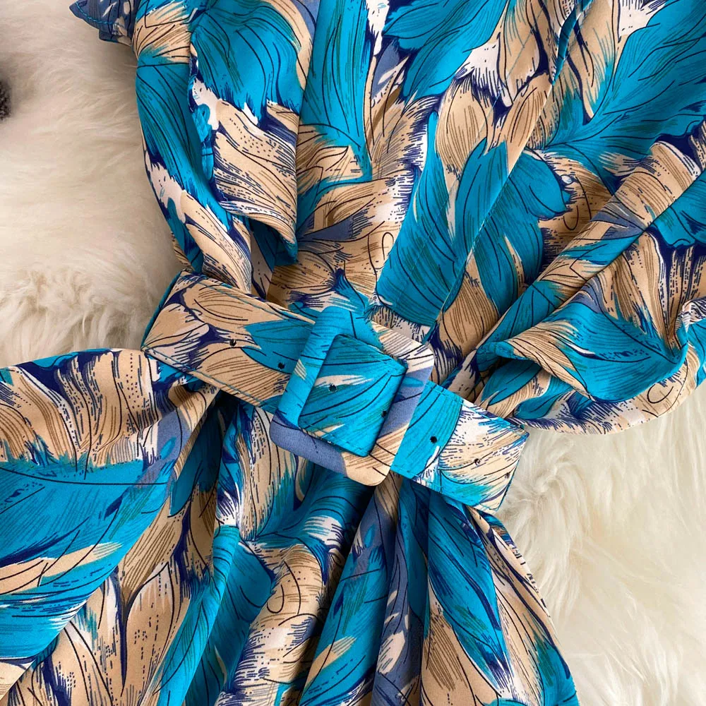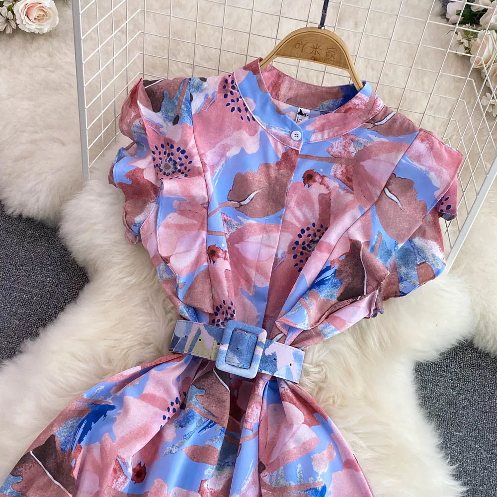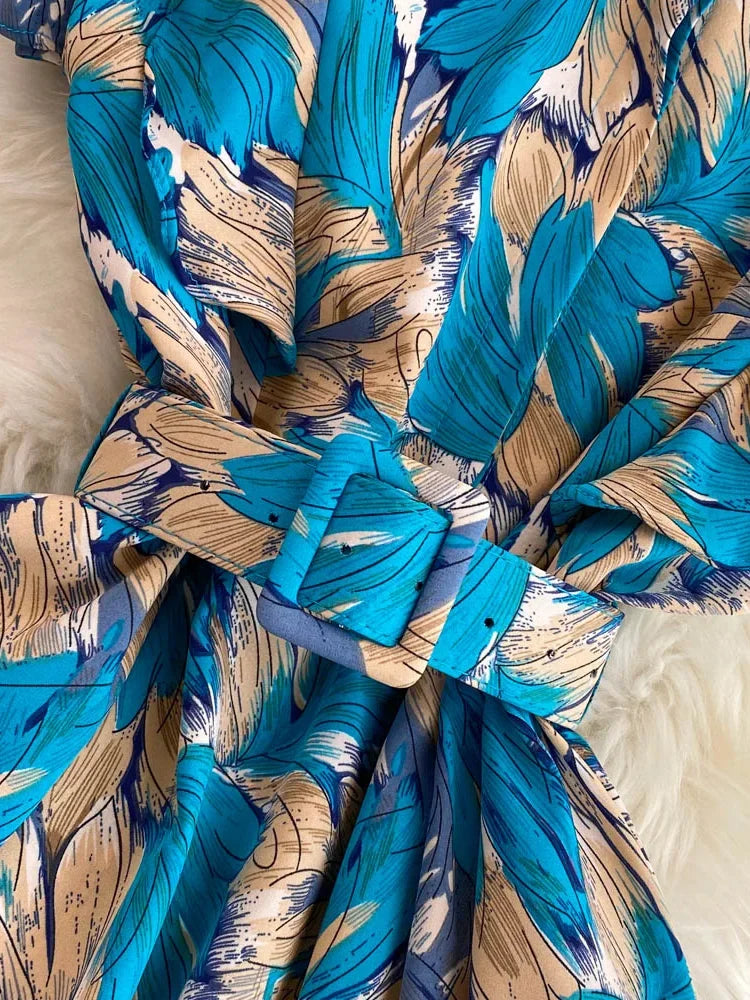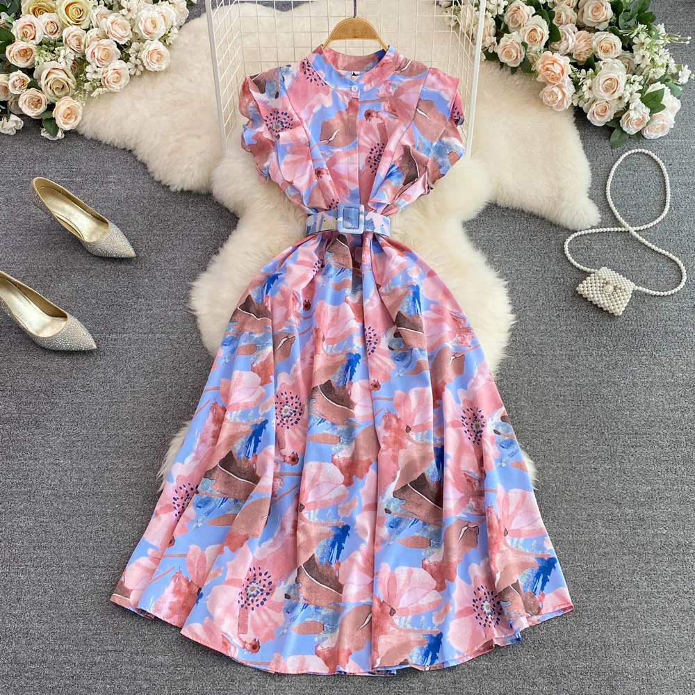 🍒 Printed midi dress high waist sleeveless a-line outfits elegant stand collar ruffle smart casual summer feminine fashion style Dont LEAF-e This In Your Basket Get This And You Will Be SKY High With Happiness