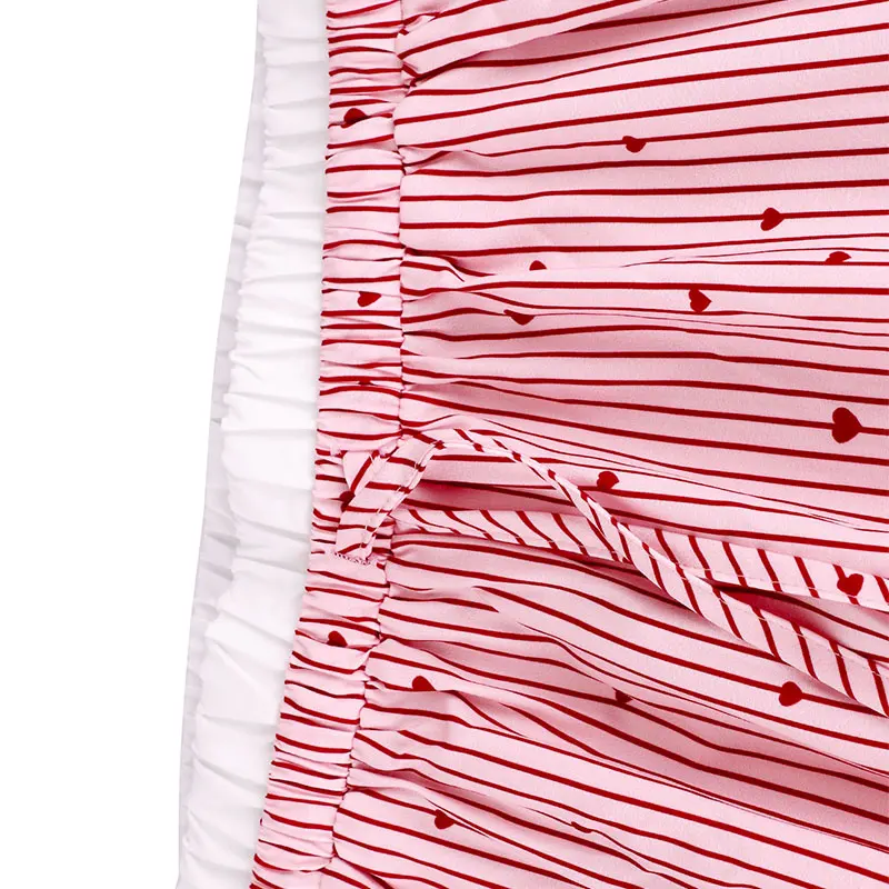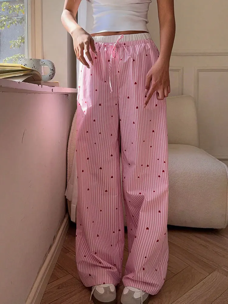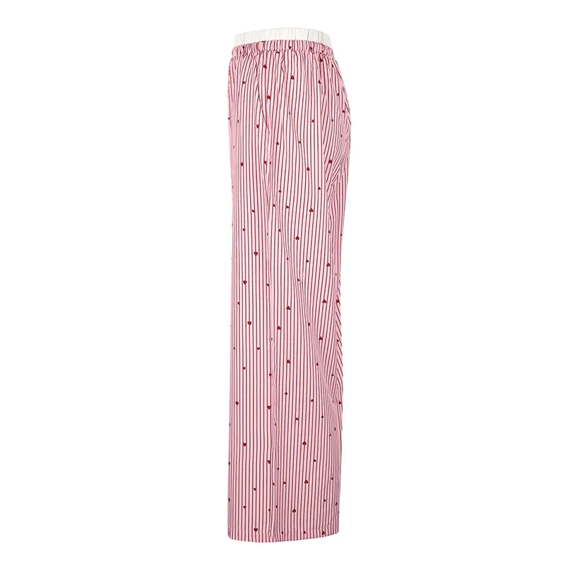 🍒Women's striped summer trousers streetwear fashion love heart print ladies pants tie waist casual trousers pink sweet Female fashion clothing Cool Out In Cotton candy