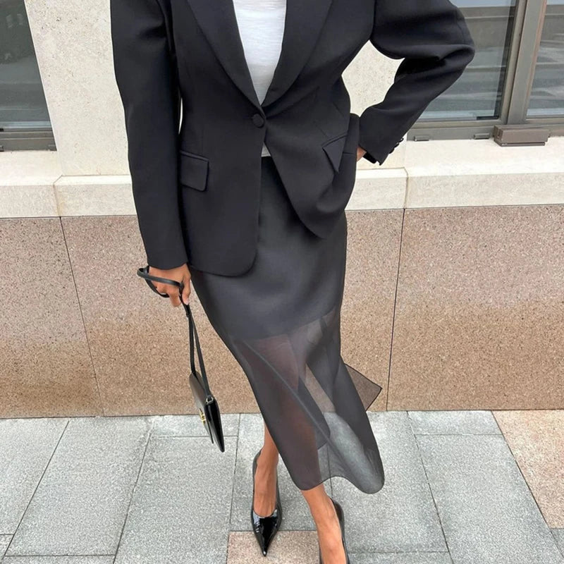 🍒Black mesh skirt long double-layer design perspective transparent maxi skirt high Waist slit hip loose female summer fashion party occasion wear Step In See Through