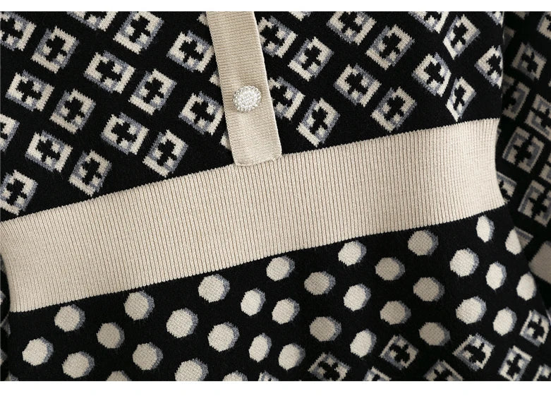 🍒Vintage knitted dress long sleeve mini o-neck autumn/winter Jacquard a-line outfits slim fit smart casual womens clothing breathable viscose Value Vintage