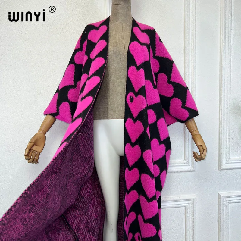 🍒 Heart print cardigan womens knitwear kimono fashion autumn winter smart casual wear party coat thick warm womens holiday coat women Warm Hearted
