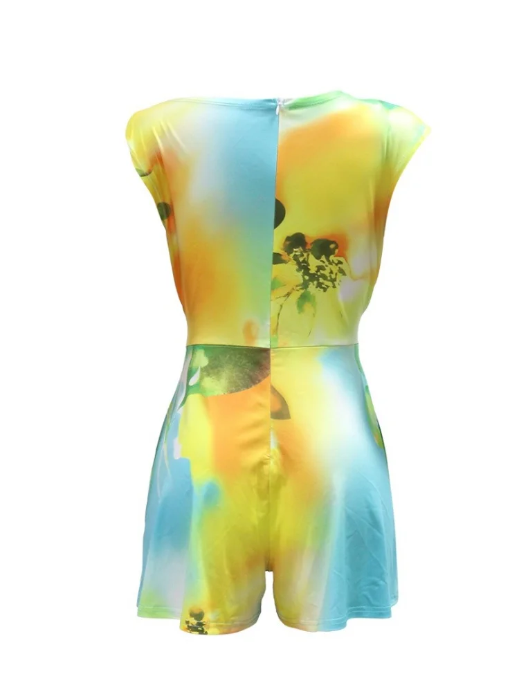 🍒 Shorts Jumpsuit loose printed sleeveless romper women with tie waist colourful summer fashion female casual clothes Jump Into A Colourful Suit