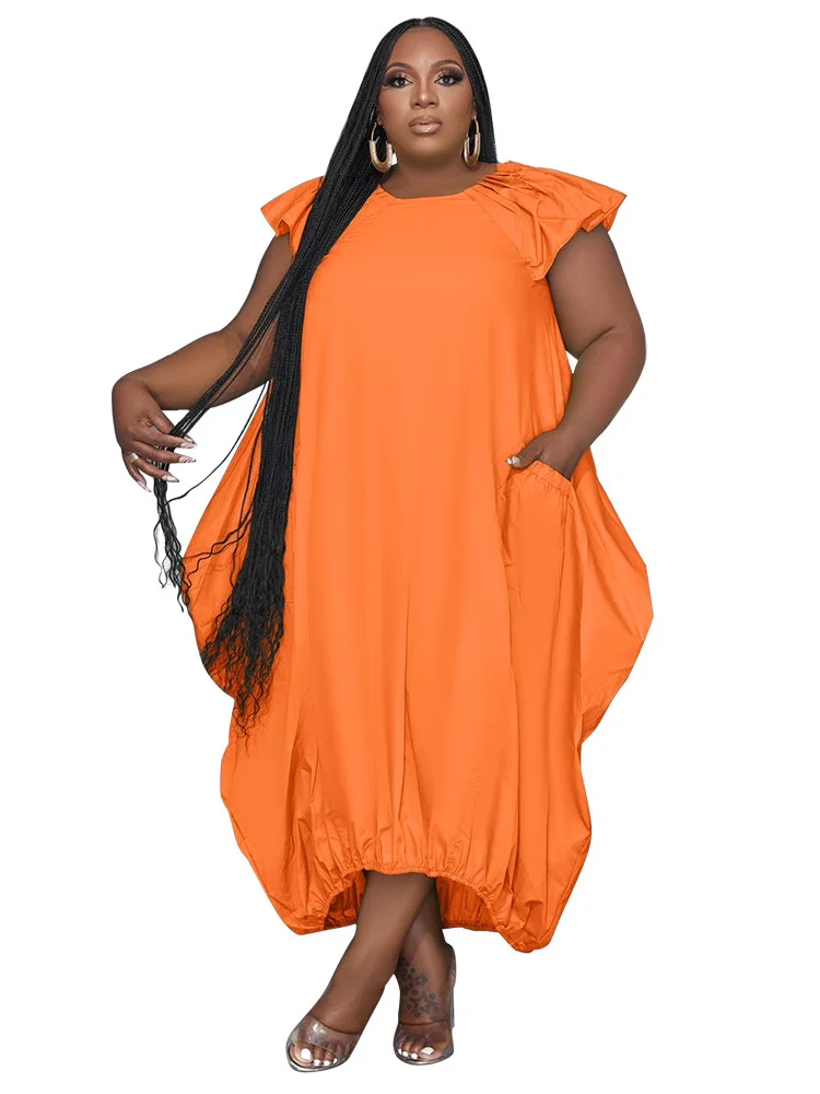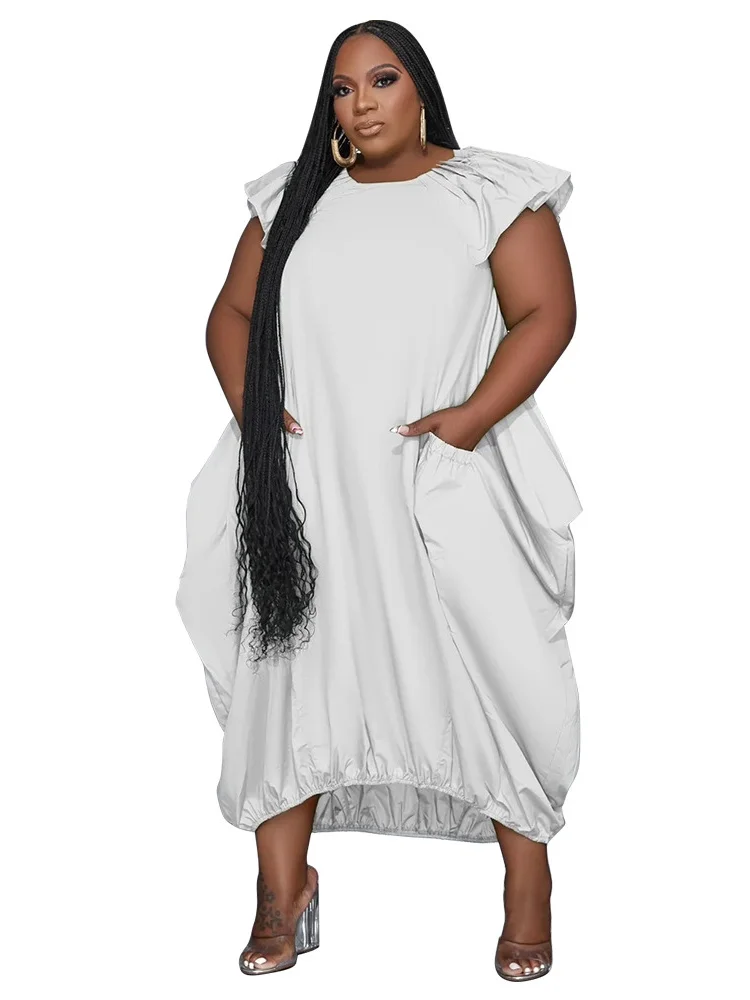🍒Plus size dresses for women loose pockets solid maxi dress summer fashion clothes smart casual wear women Bag A Bag
