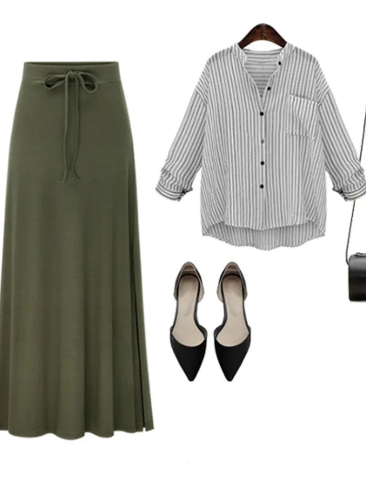 🍒Elasticated waist skirts a-line miidi cotton long loose bowknot casual clothing for women all season wear
