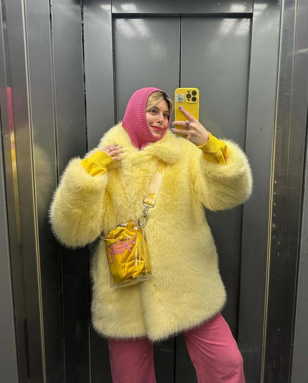 🍒Long Sleeve faux fur jacket with turn down collar loose fit short coat casual autumn jacket winter outerwear Check Out This Chick