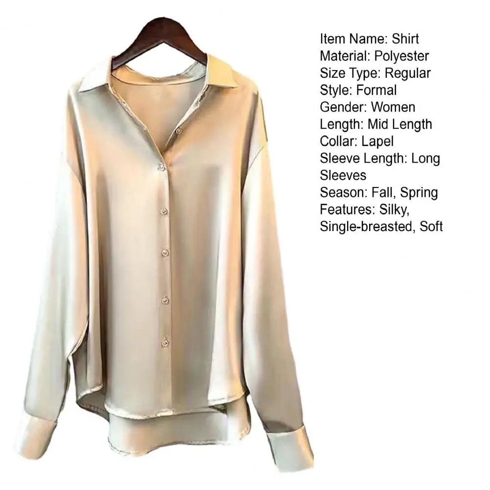 Women Spring Fall Shirt Silky Satin Turn-down Collar Single-breasted Soft Breathable Long Sleeve Loose Formal Business OL Commute Blouse