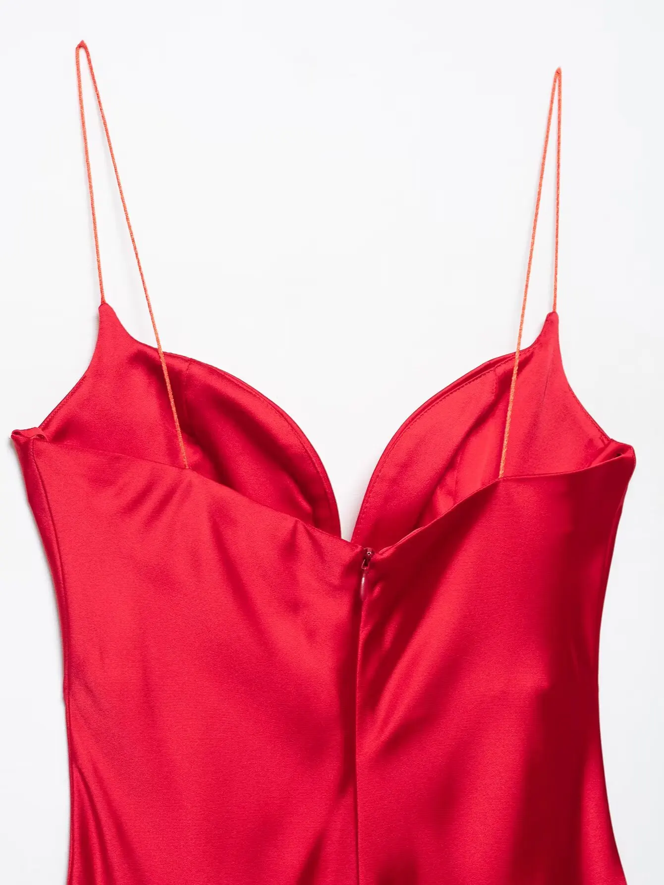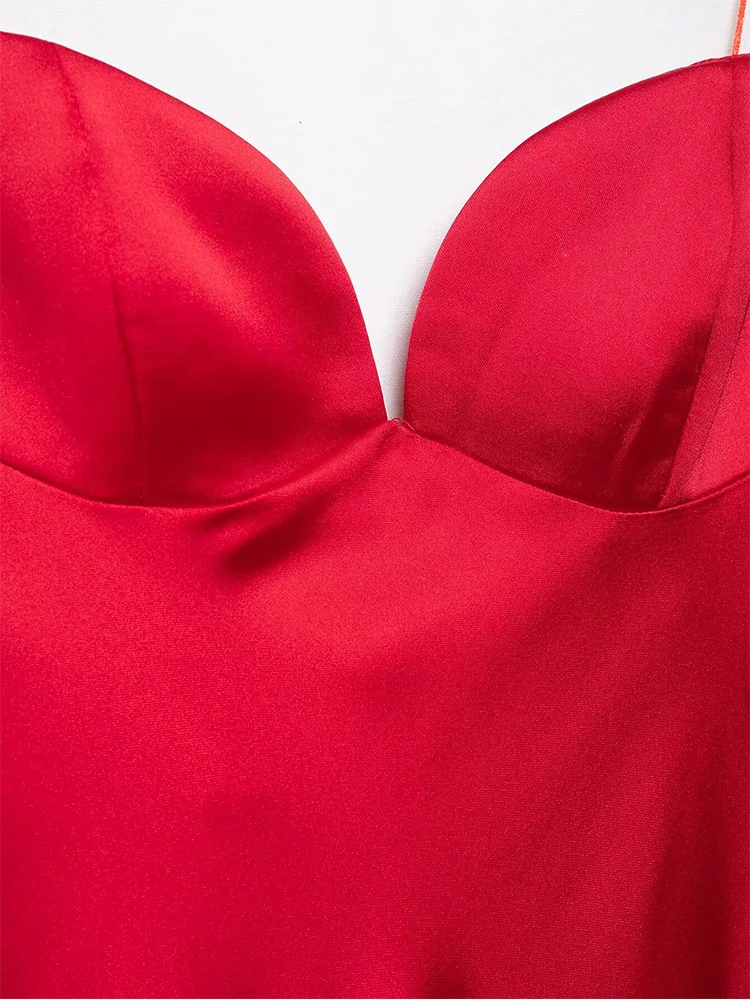🍒Satin halter dress maxi spaghetti straps sweet heart sleeveless dress red backless outfit for evening party wear occasion clothing red Satin Passion Fashion