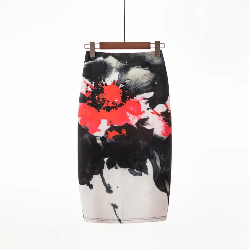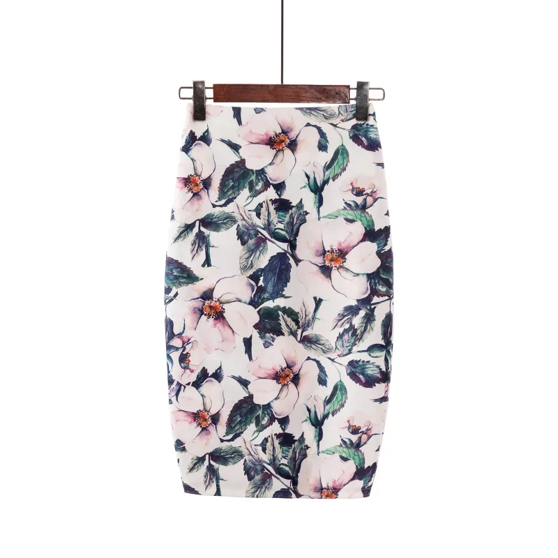 🍒 flower print pencil skirt bodycon slim midi skirt short floral print fashion smart casual women feminine clothes